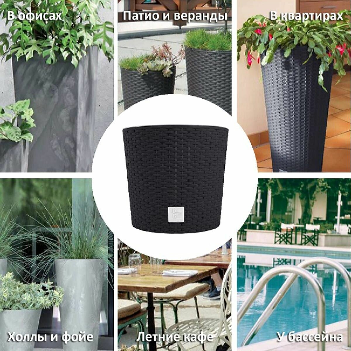 СохранитьКашпо для цветов напольное уличное и комнатное пластиковое из искусственного ротанга, горшок для фикуса суккулентов орхидеи высокий 15 и 15.3л, вазон для кактуса на балкон большой с декоративной подставкой интересное: