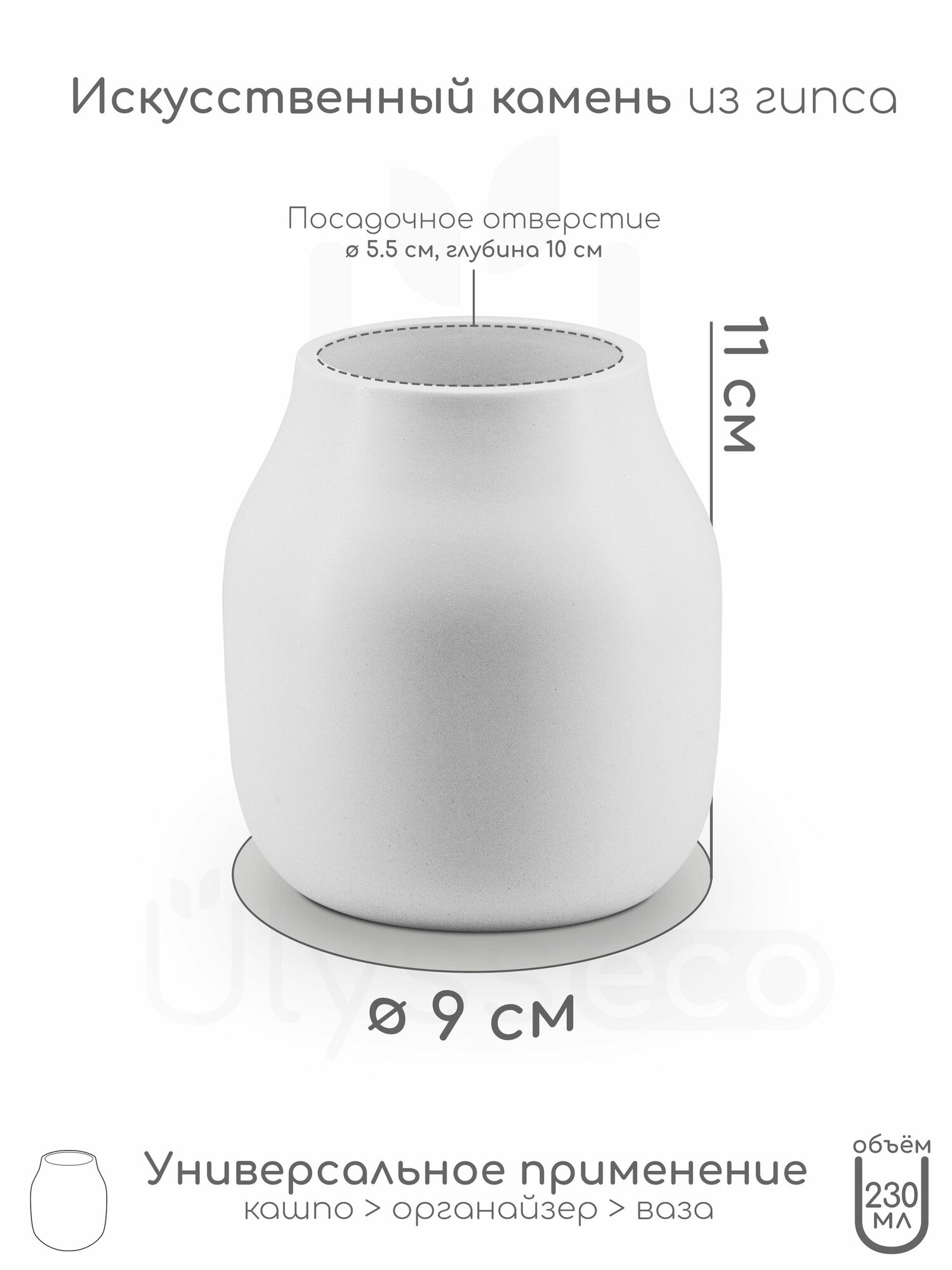 Кашпо в скандинавском стиле Swedy, искусственный камень, лак, 8х8.5 см