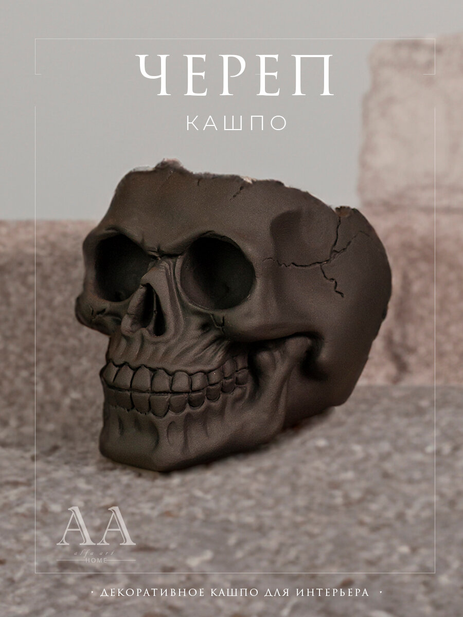 Кашпо Череп из гипса/ Органайзер для кисточек и канцелярии / Декор на хэллоуин аксессуар украшение интересное: