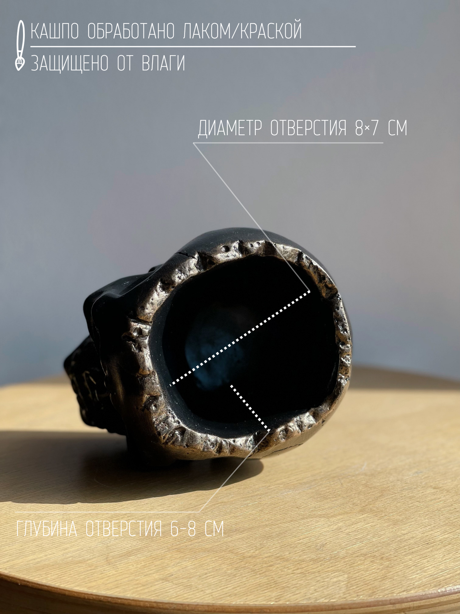 Купить Кашпо-органайзер "Череп" в черном цвете с бронзой, 10 см, гипс