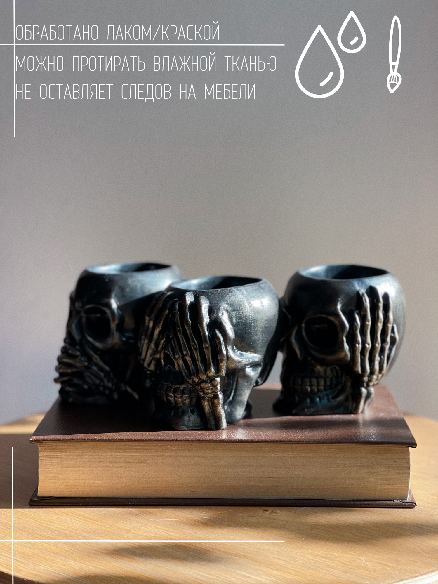 СохранитьНабор кашпо Черепа "Не вижу, не слышу, не говорю", 8 см, черно-бронзовые интересное: