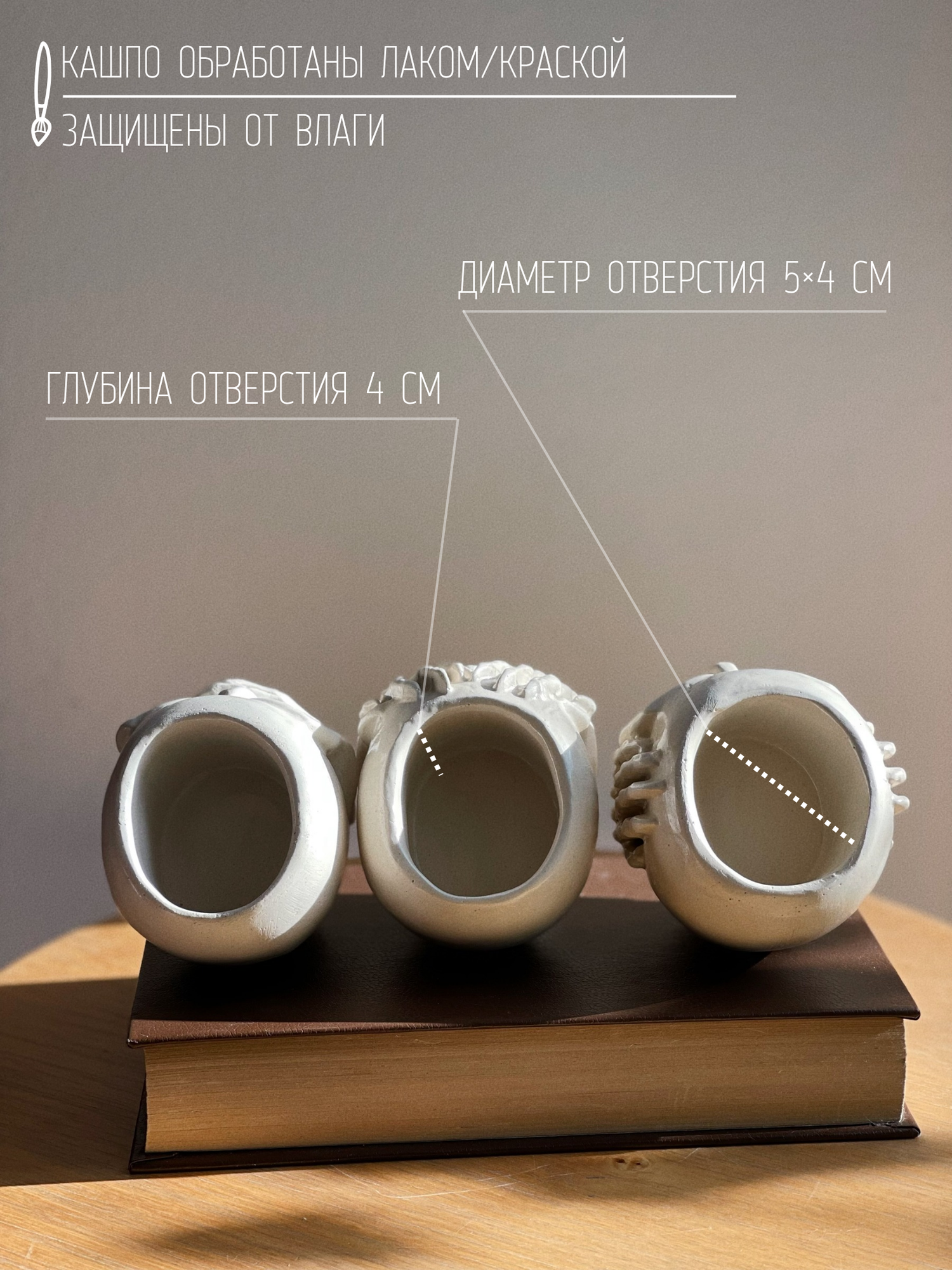 Набор кашпо Черепа "Не вижу, не слышу, не говорю", 8 см, 3 шт, гипс