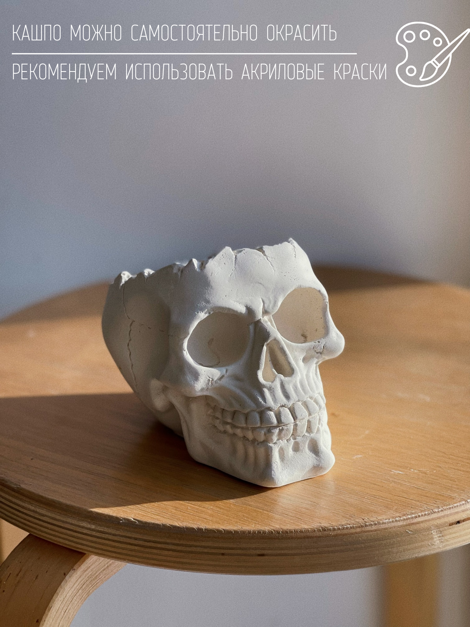 СохранитьКашпо-органайзер "Череп" 10см, гипс, без окрашивания, декор для дома интересное:
