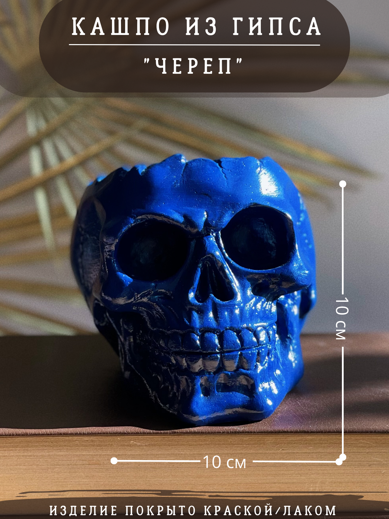 СохранитьКашпо-органайзер "Череп" в синем цвете, 10 см, гипс, статуэтка интересное: