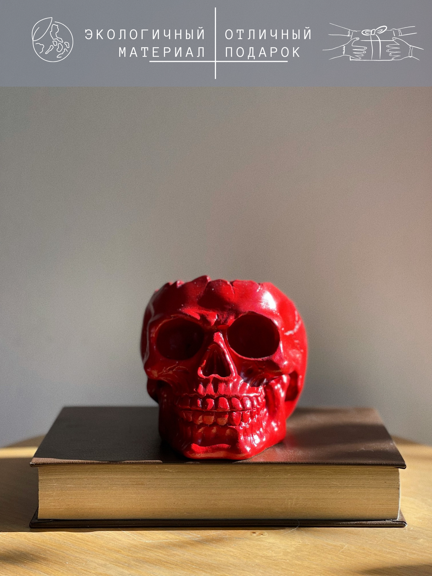 СохранитьКашпо-органайзер "Череп" в красном цвете, 10 см, гипс, статуэтка интересное: