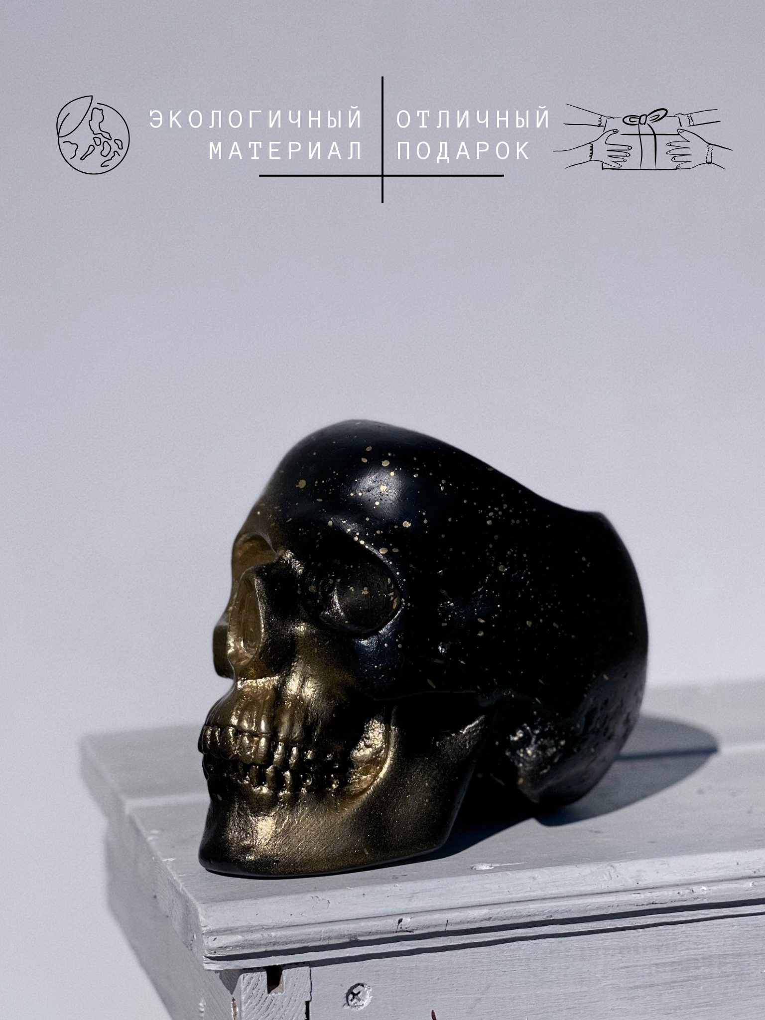 СохранитьКашпо из гипса Череп анатомический в черном цвете с золотом, 15 см, органайзер интересное: