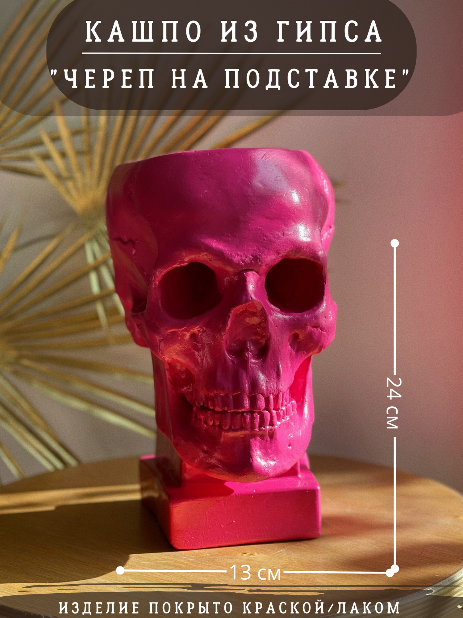 СохранитьКашпо "Череп натуральный" в розовом цвете, органайзер, 24 см, фуксия интересное: