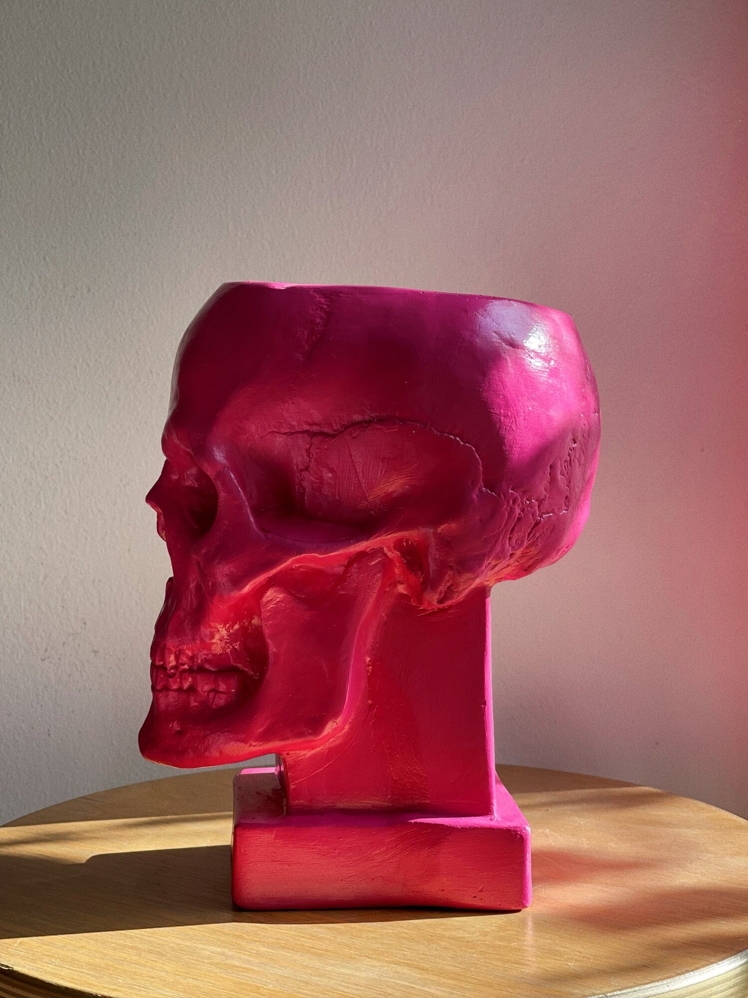 Купить Кашпо "Череп натуральный" в розовом цвете, органайзер, 24 см, фуксия