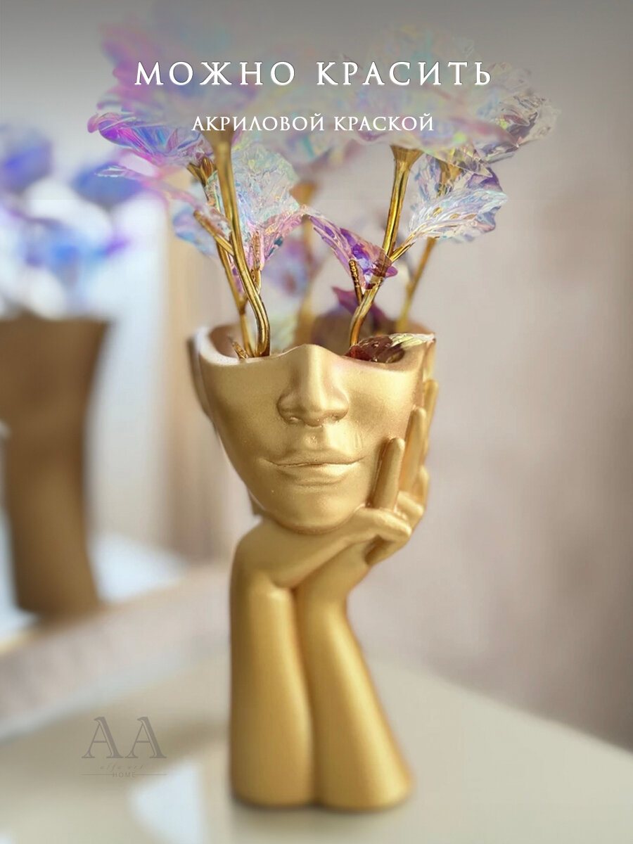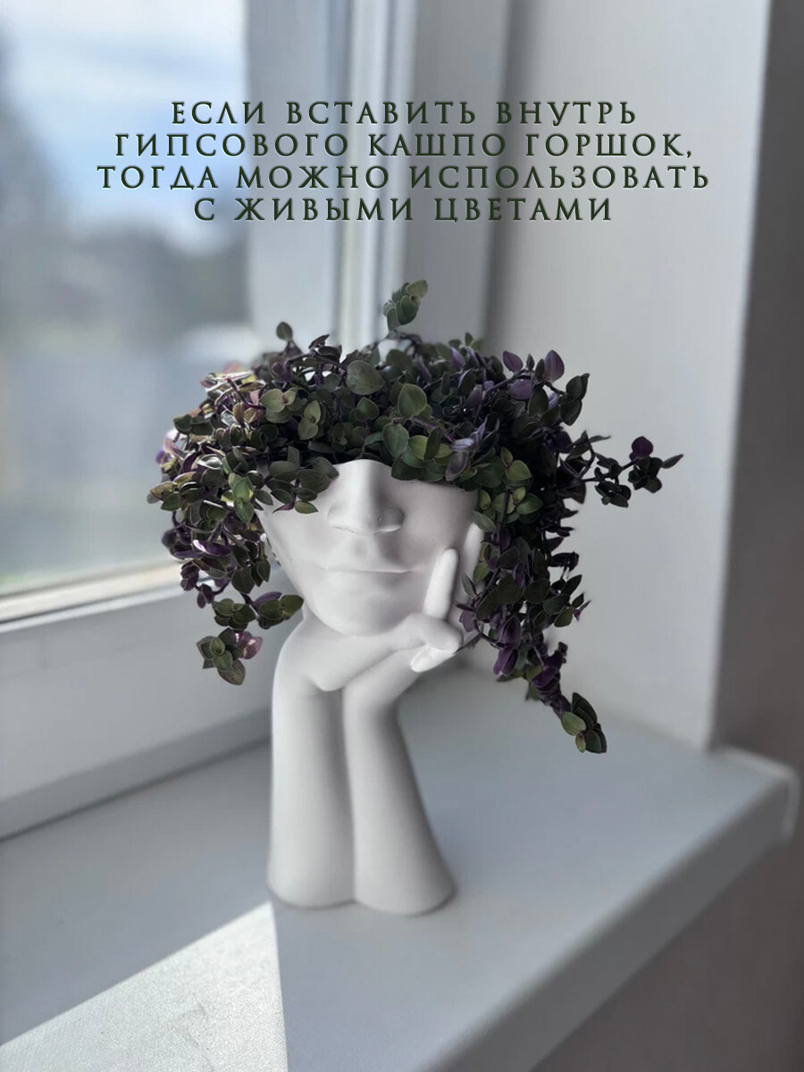 Декоративное кашпо белое из гипса для цветов голова девушка с руками Милота / Ваза для конфет интересное: