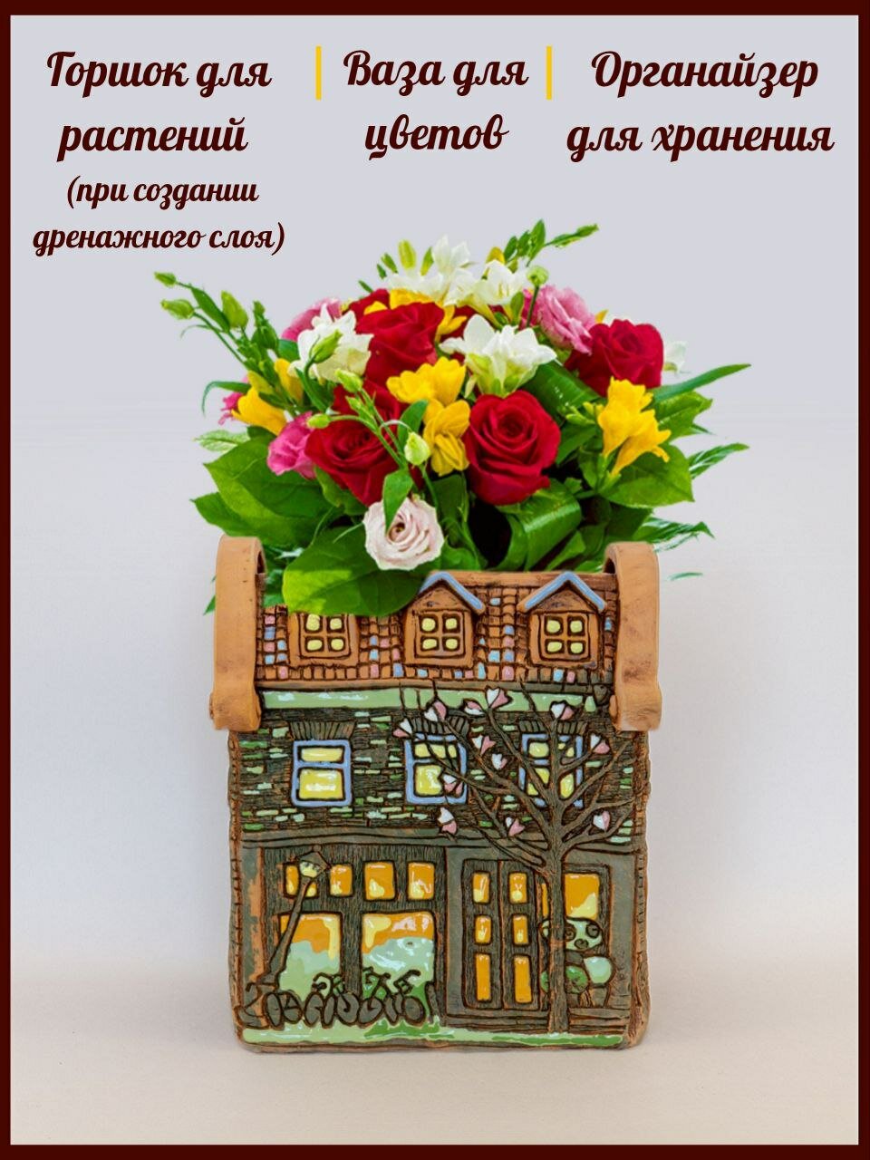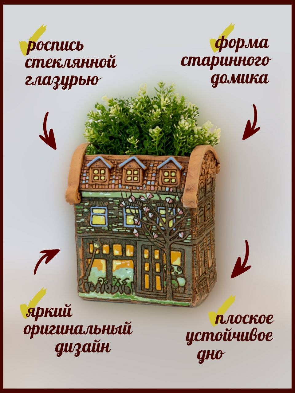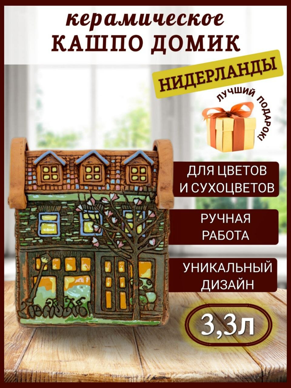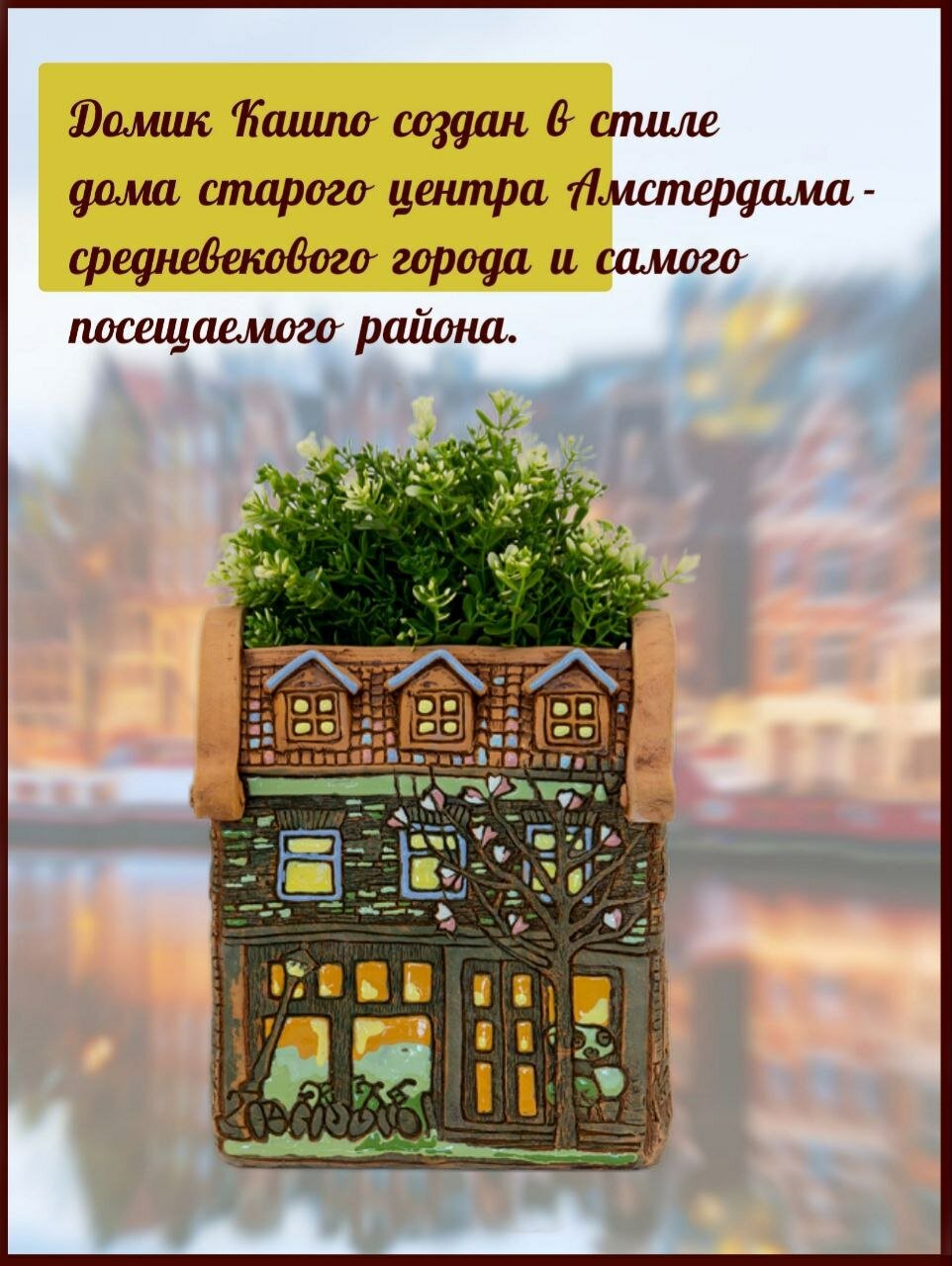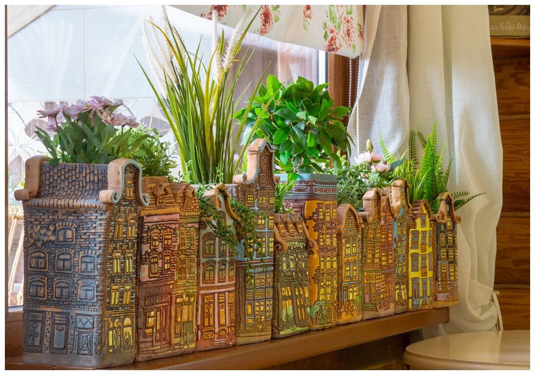 Авторское керамическое кашпо для цветов ручной работы, Нидерланды дом № 5, 3 л интересное: