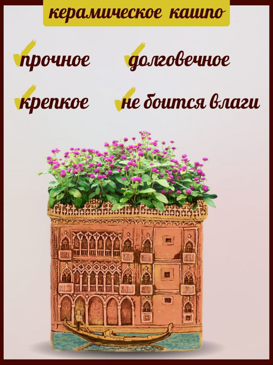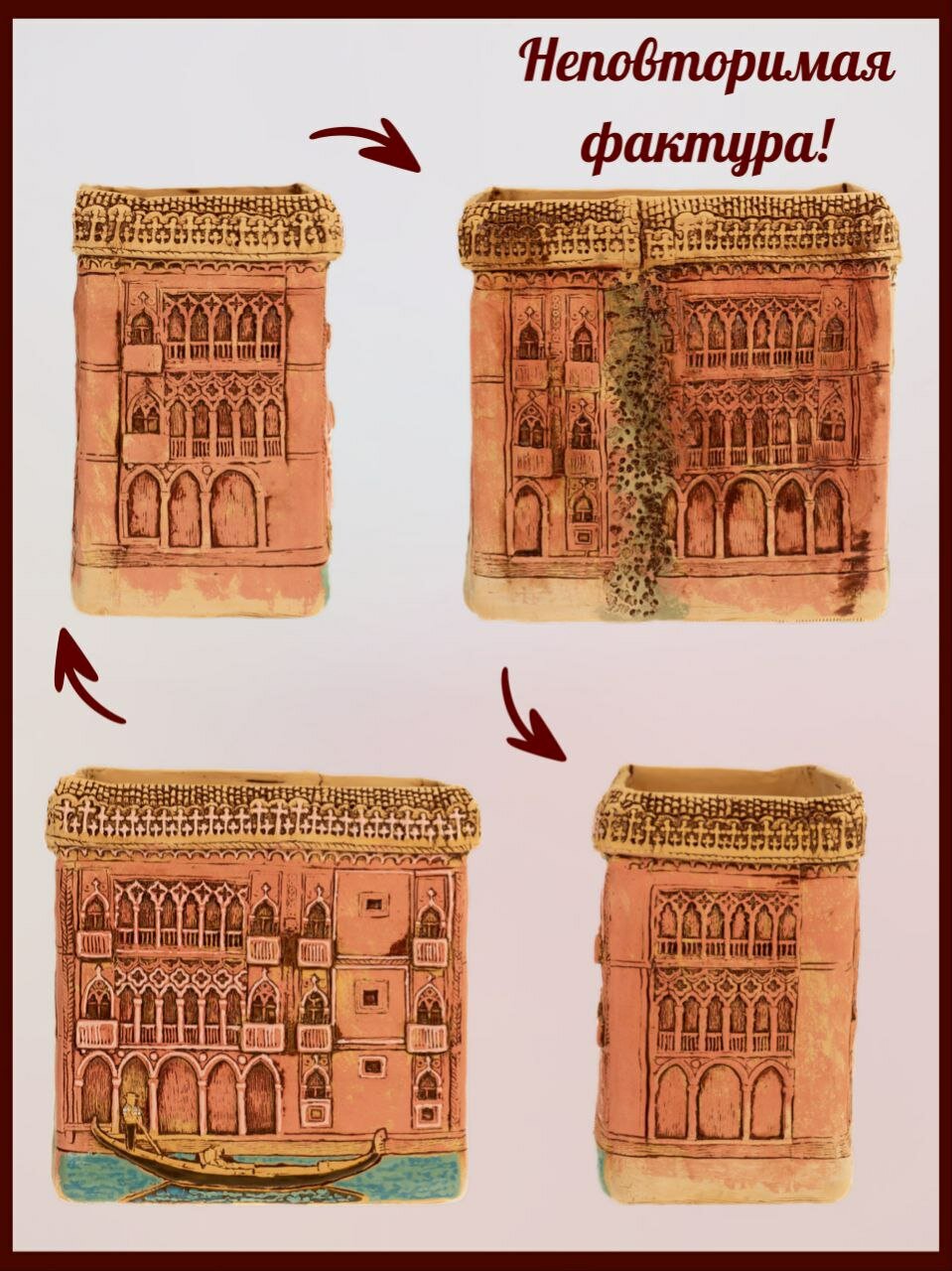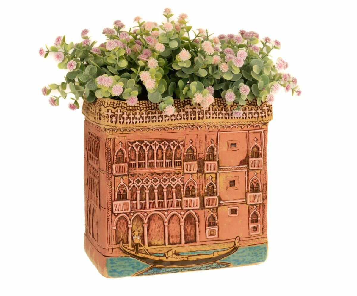Авторское керамическое кашпо для цветов ручной работы, Венеция дом №5 интересное: