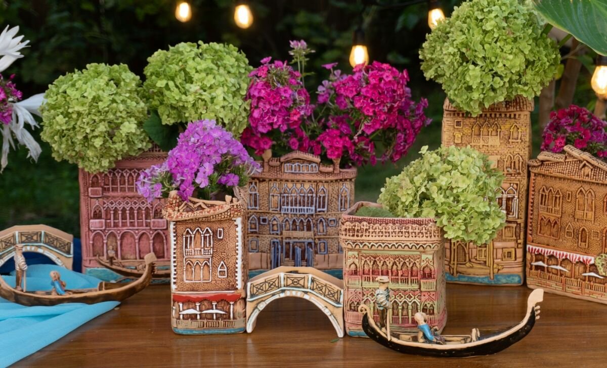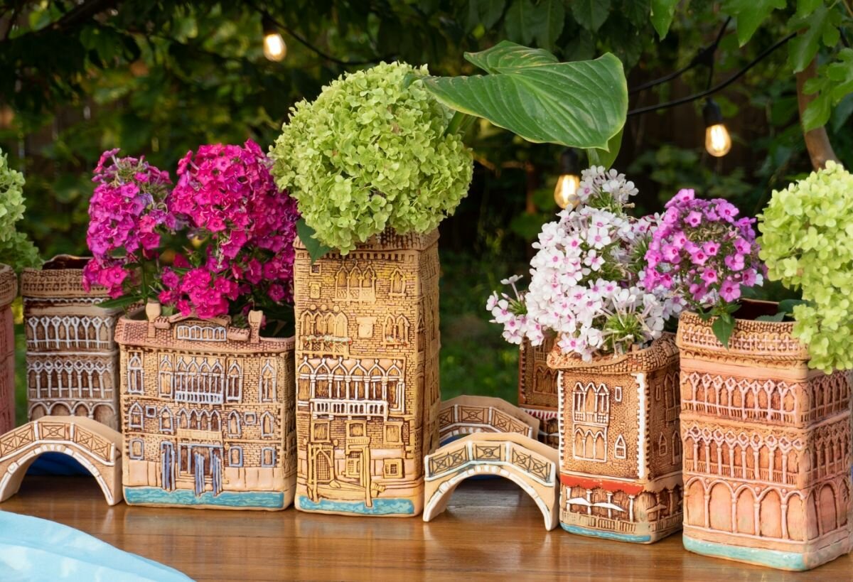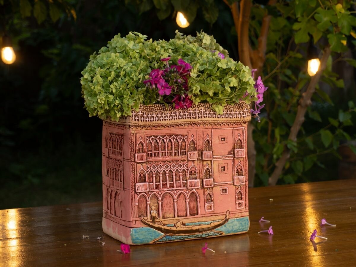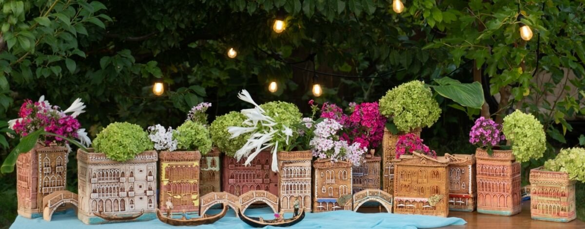 Авторское керамическое кашпо для цветов ручной работы, Венеция дом №5 интересное:
