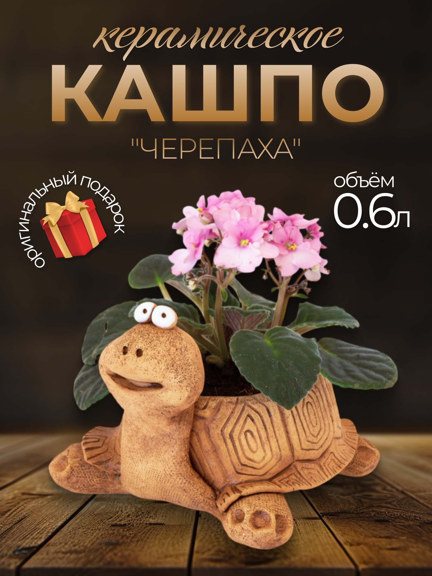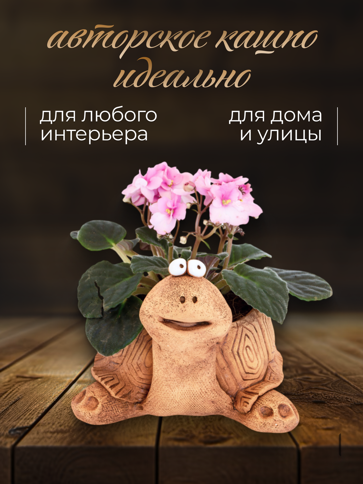 Авторское керамическое кашпо для цветов ручной работы, Черепаха, 0,6л интересное: