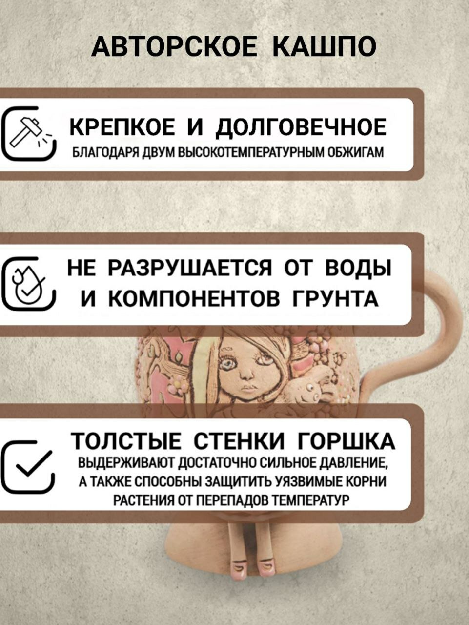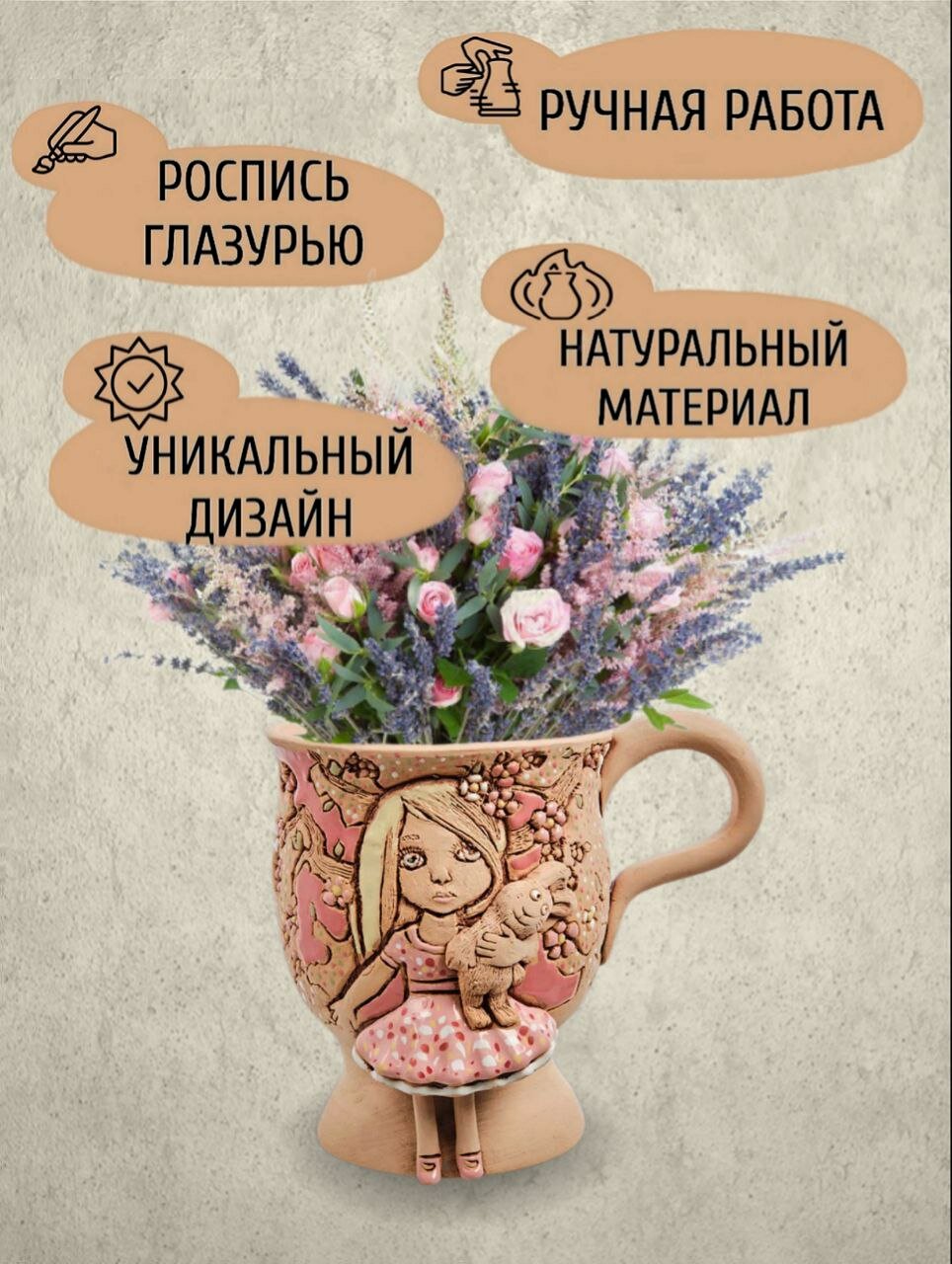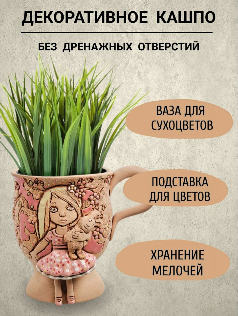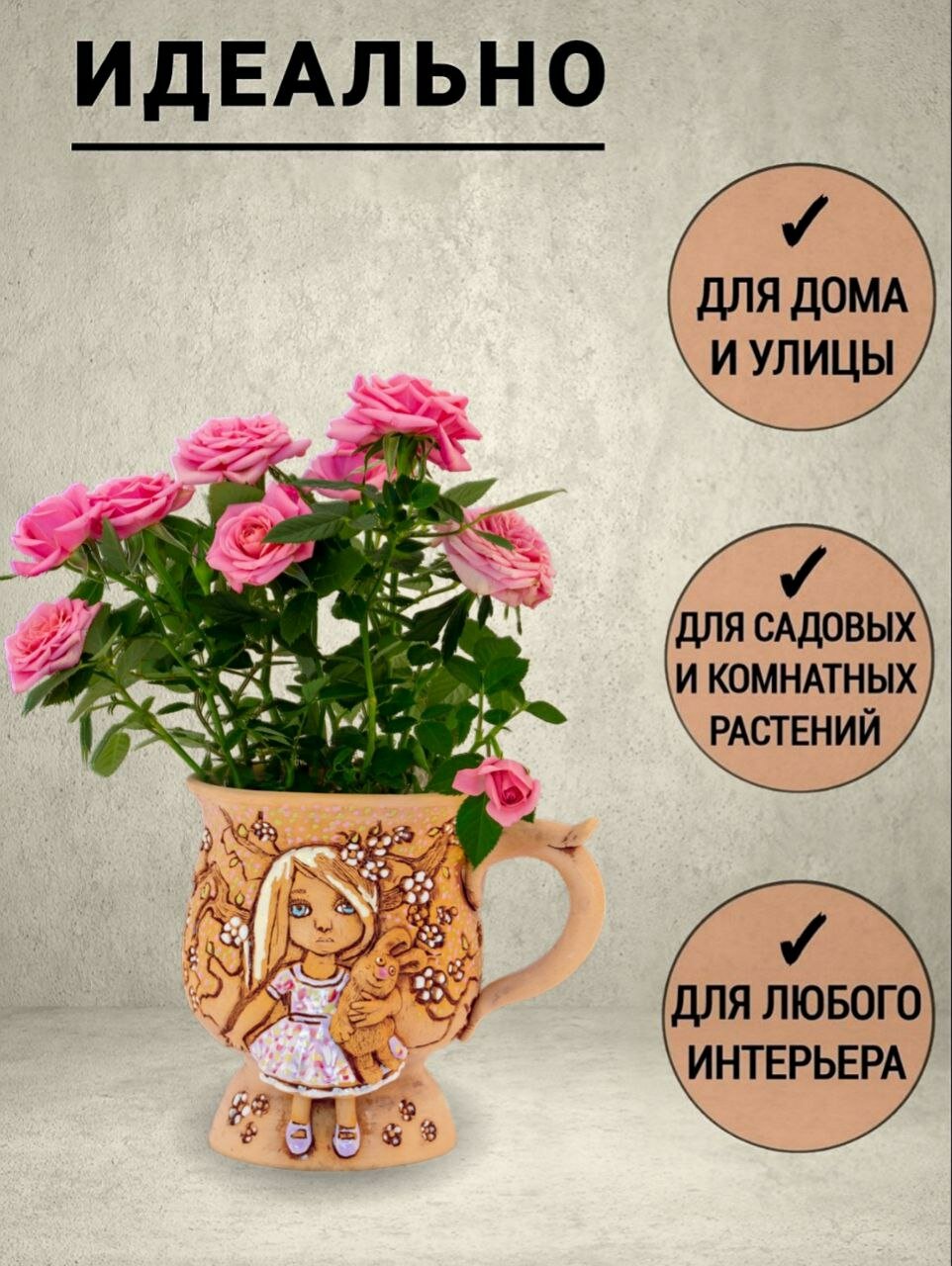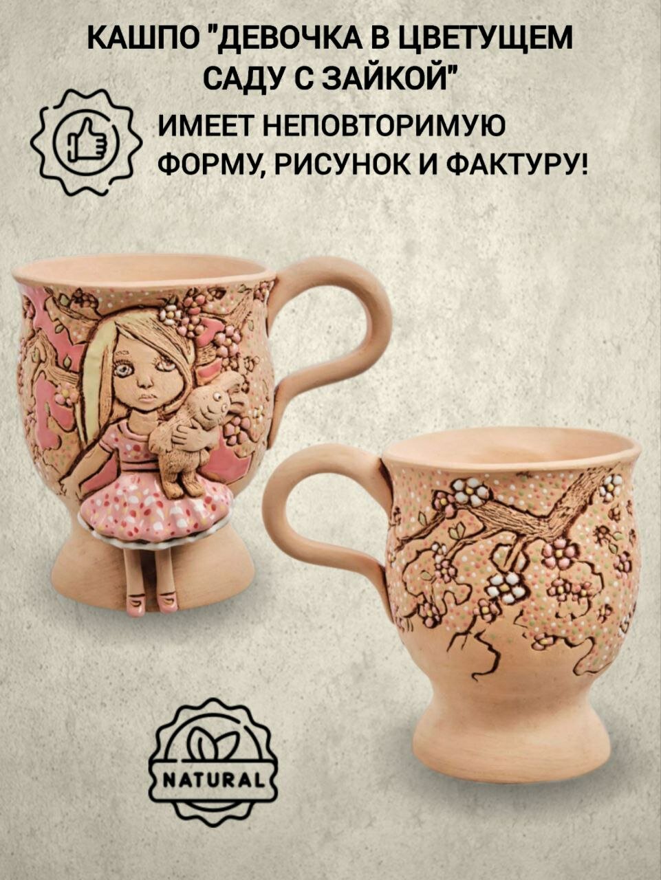 Авторское керамическое кашпо для цветов ручной работы, Девочка в цветущем саду с зайкой, 0,95л интересное: