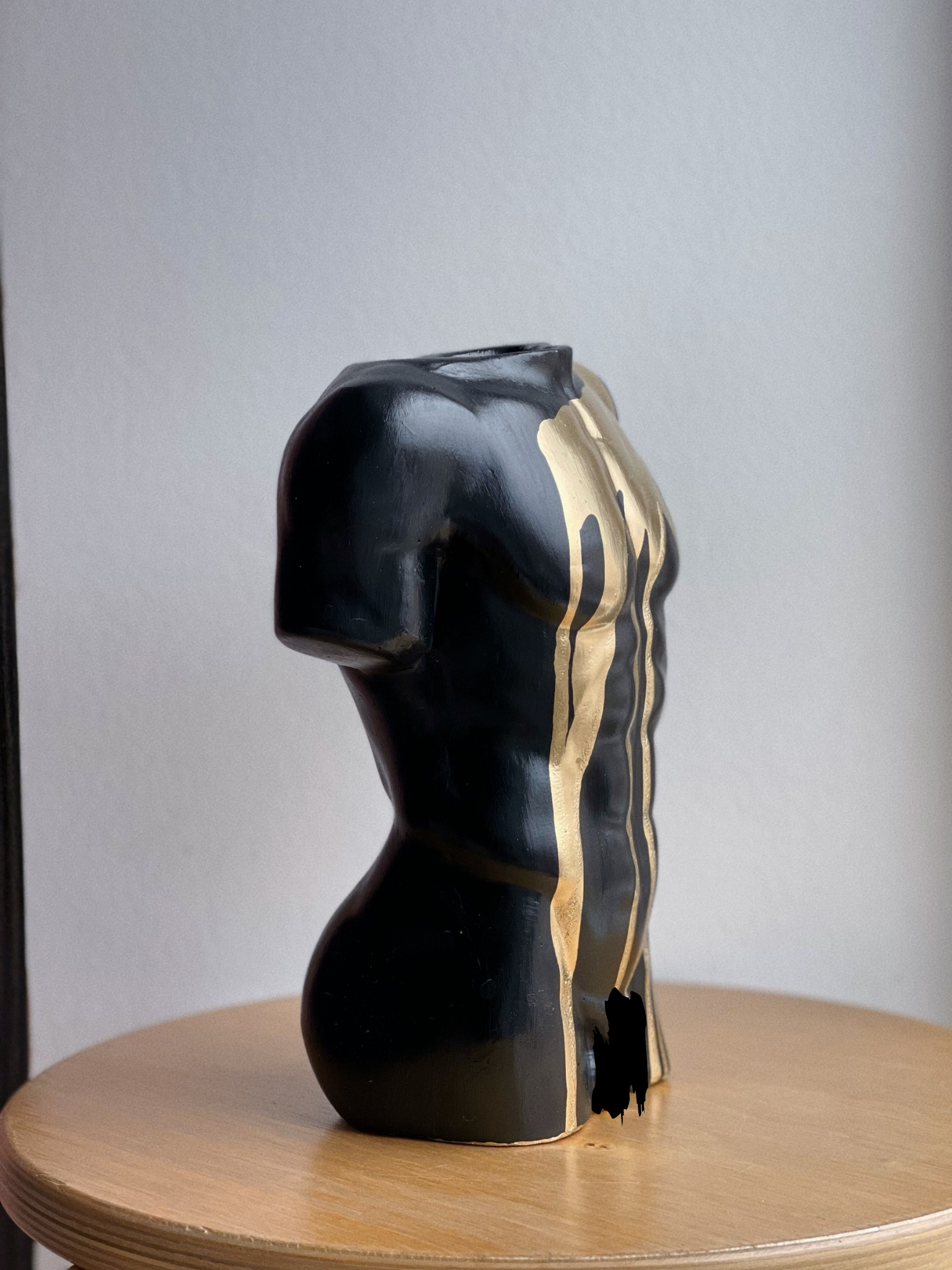 Кашпо Мужской торс в черном цвете с золотым дизайном, 25 см/гипс/ваза