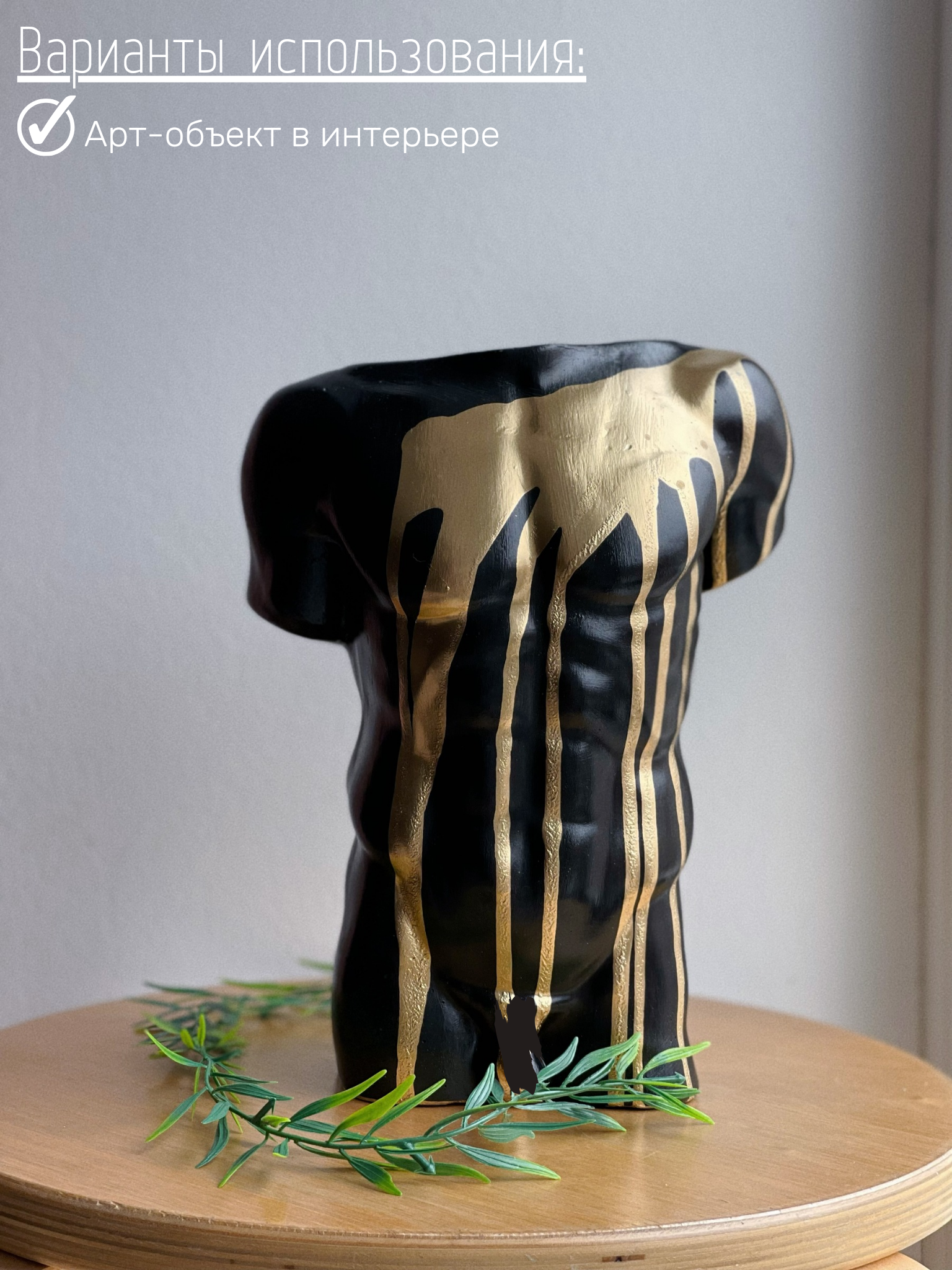 СохранитьКашпо из гипса Мужской торс, 25 см, черно-золотой, ваза, органайзер интересное: