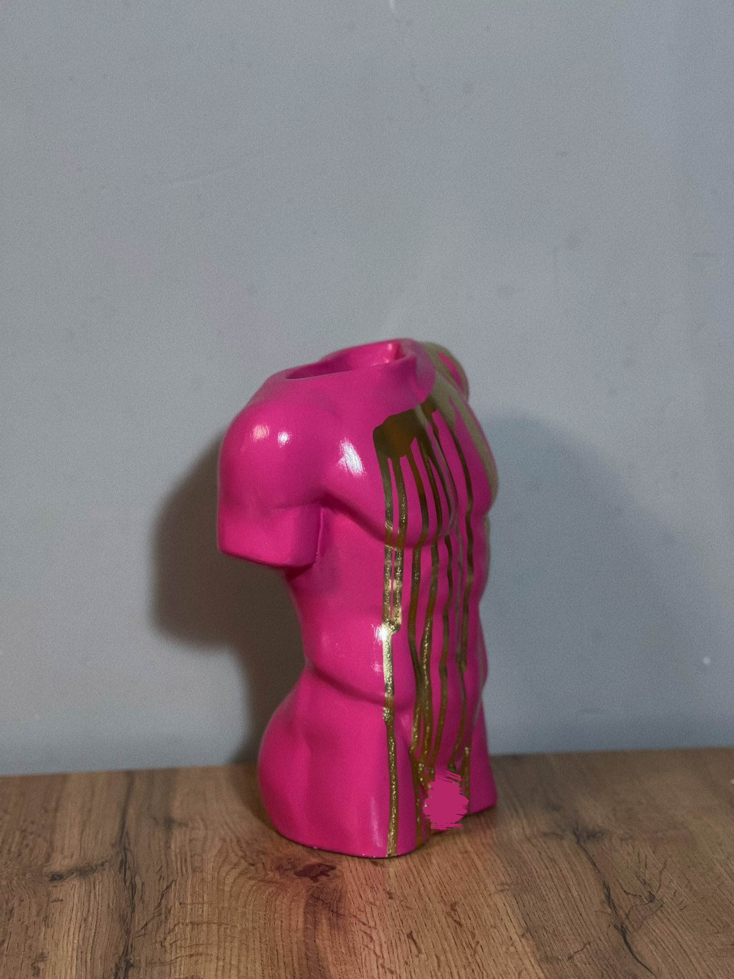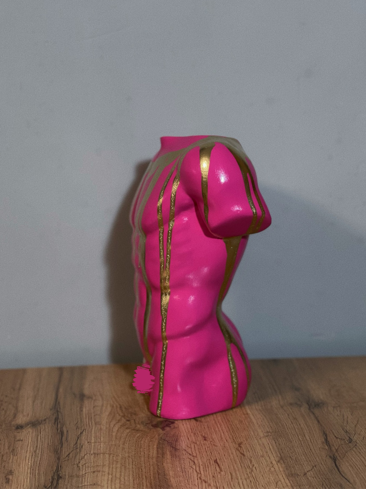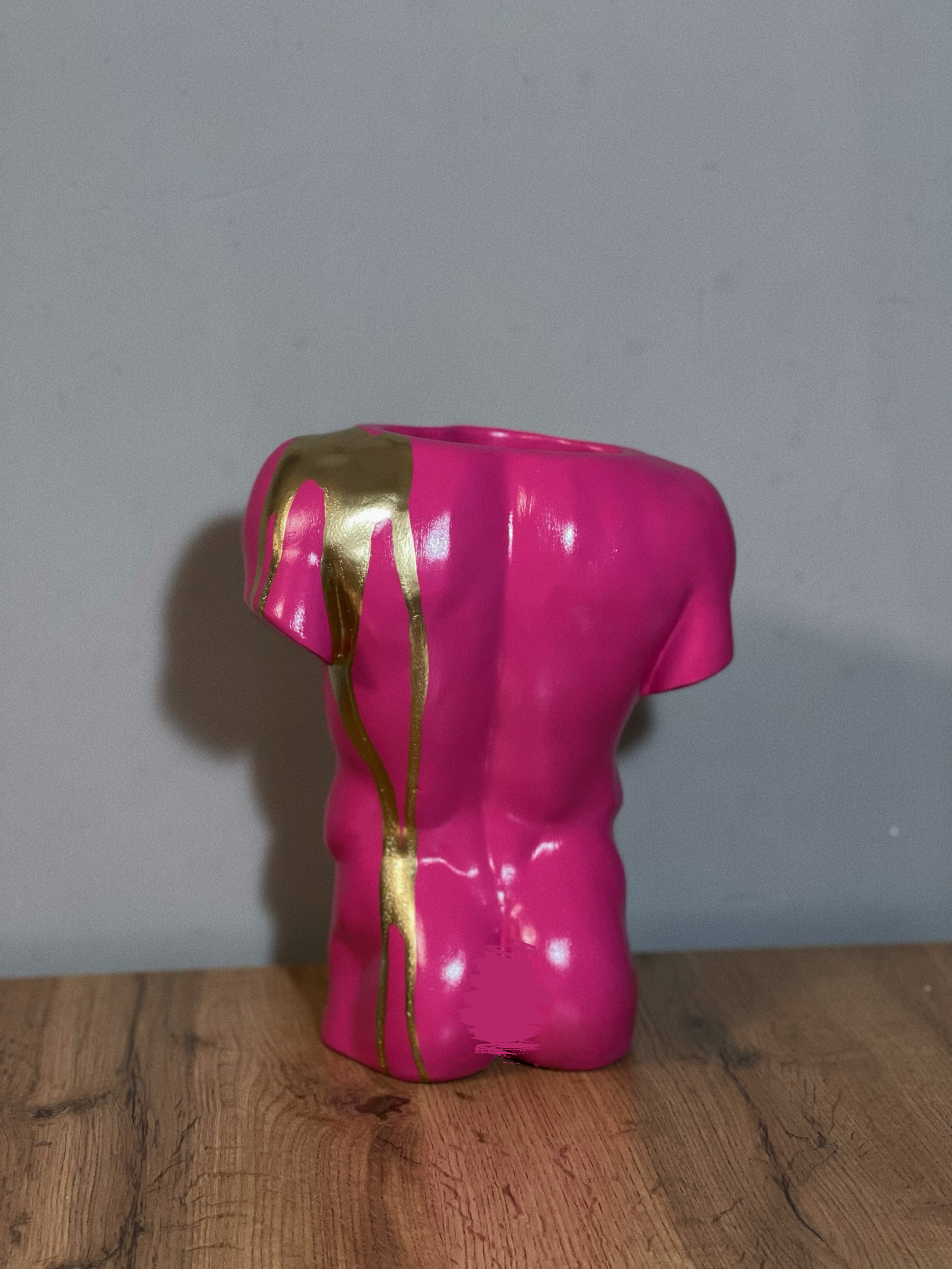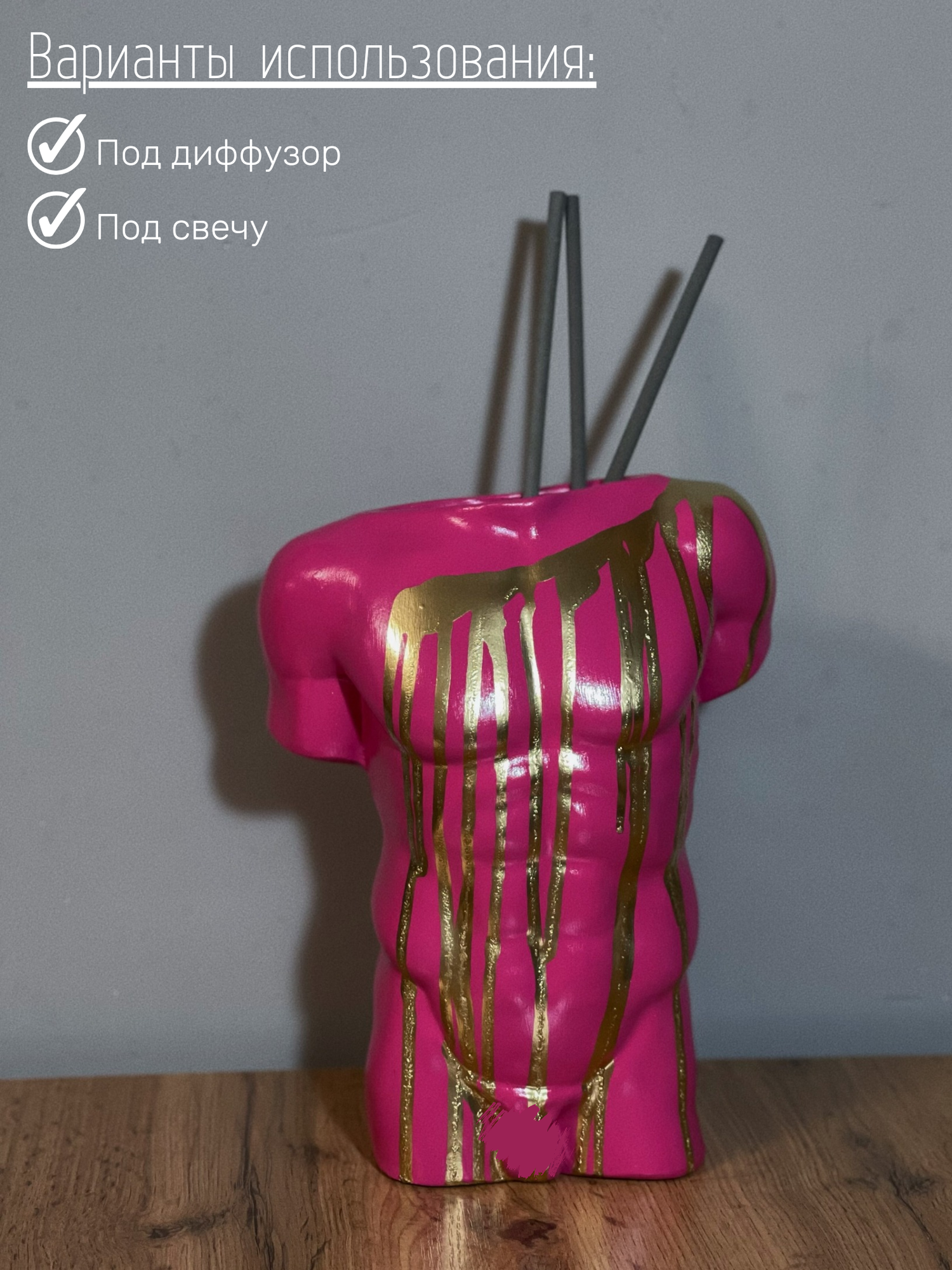 Купить Кашпо из гипса Мужской торс, 25 см, фуксия/золотой, ваза, органайзер