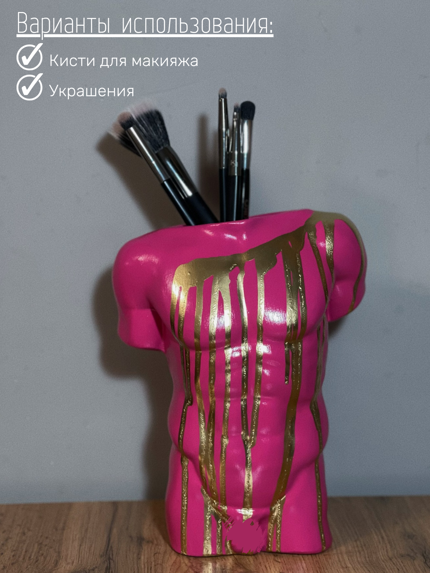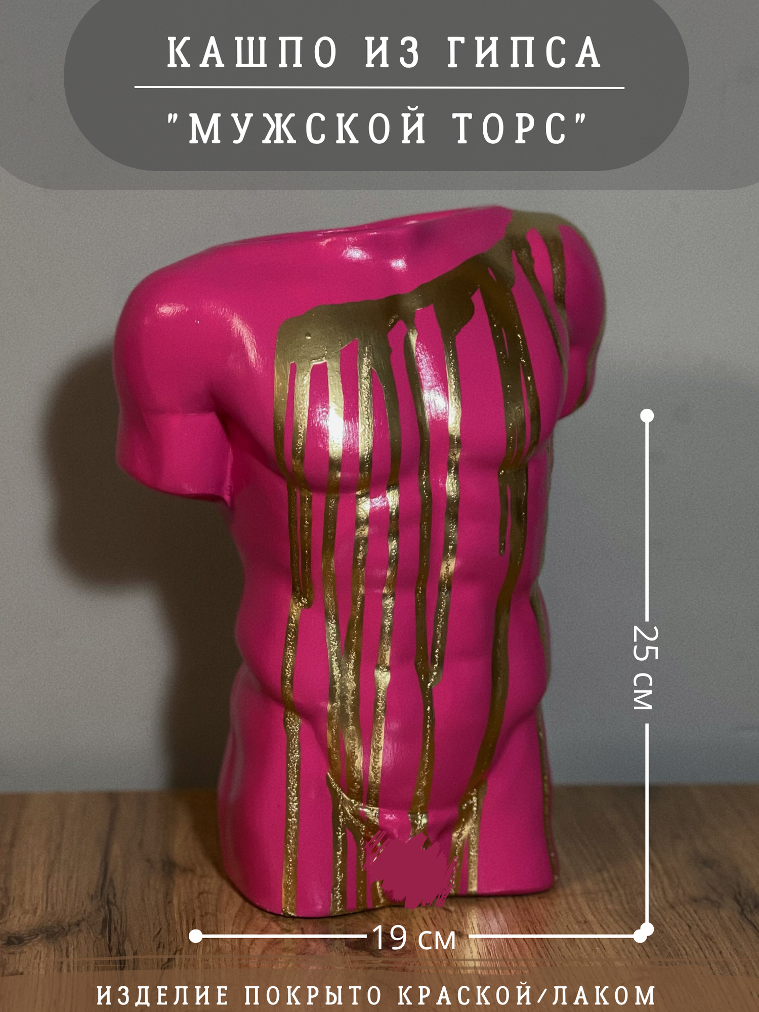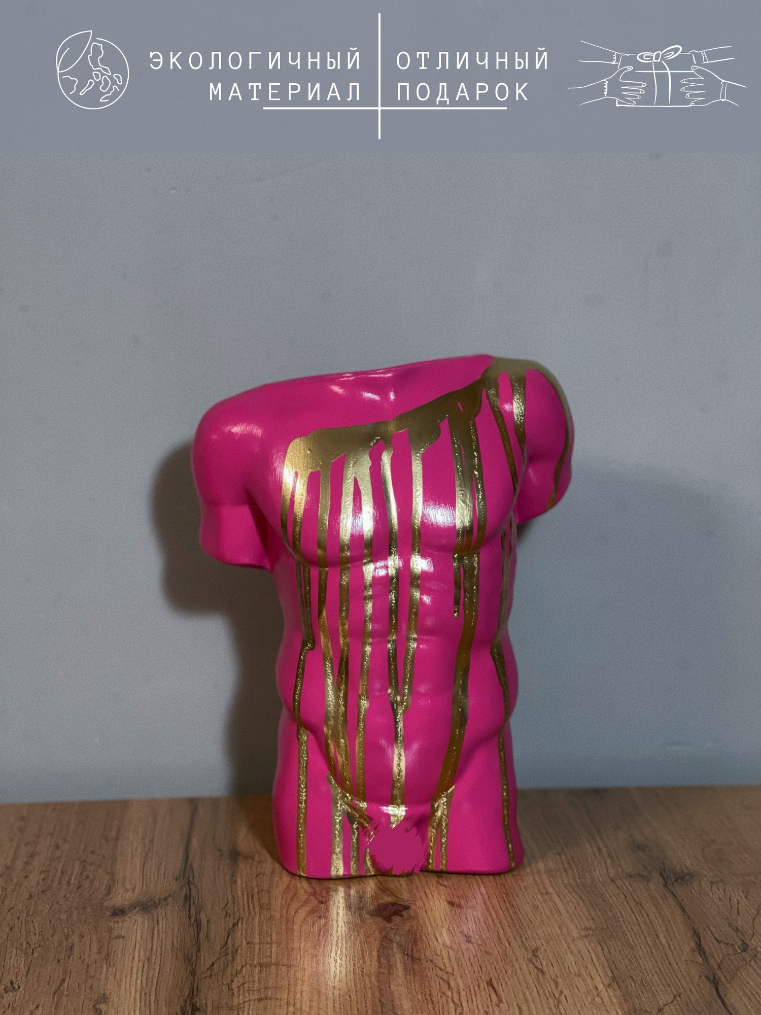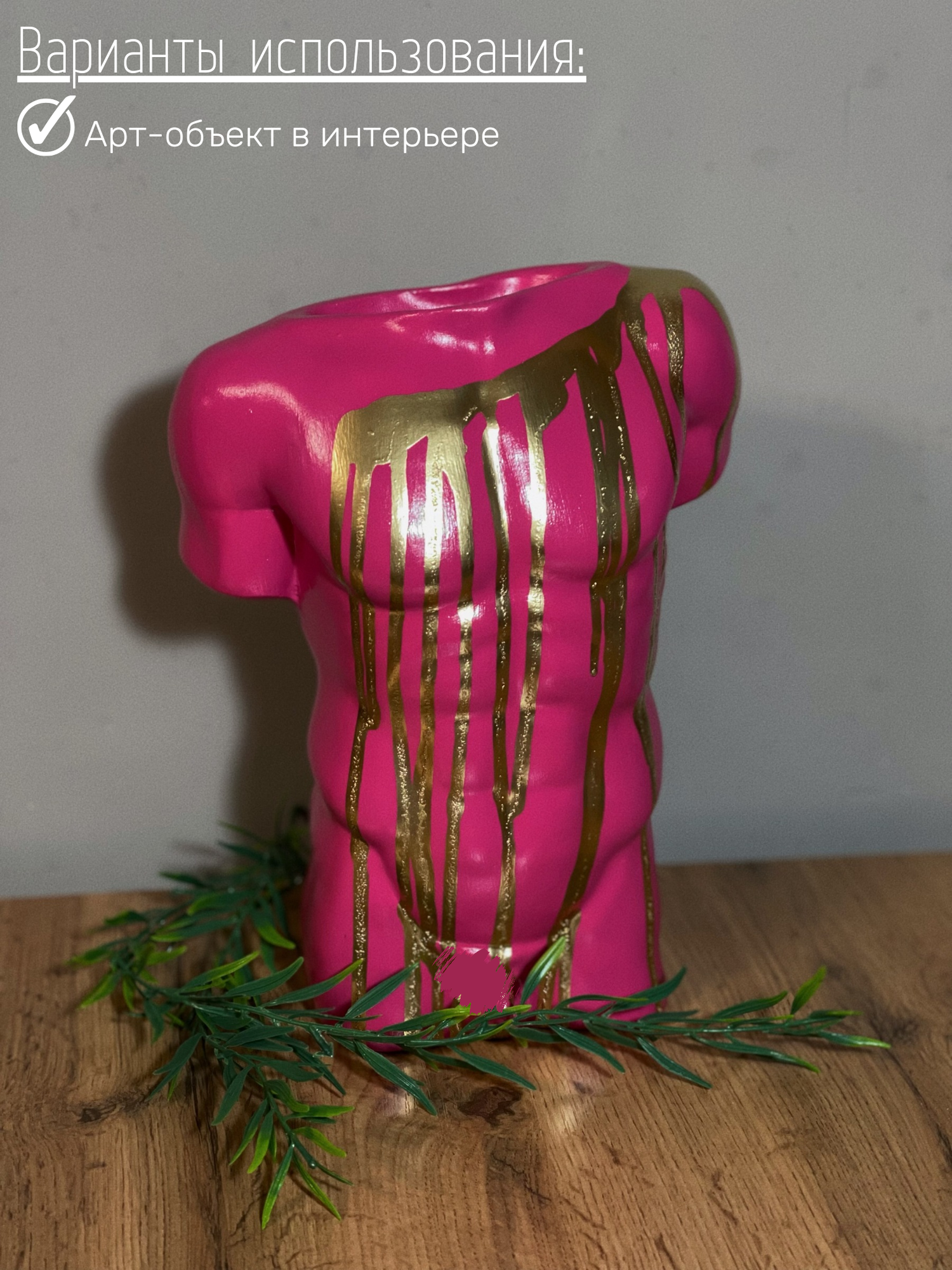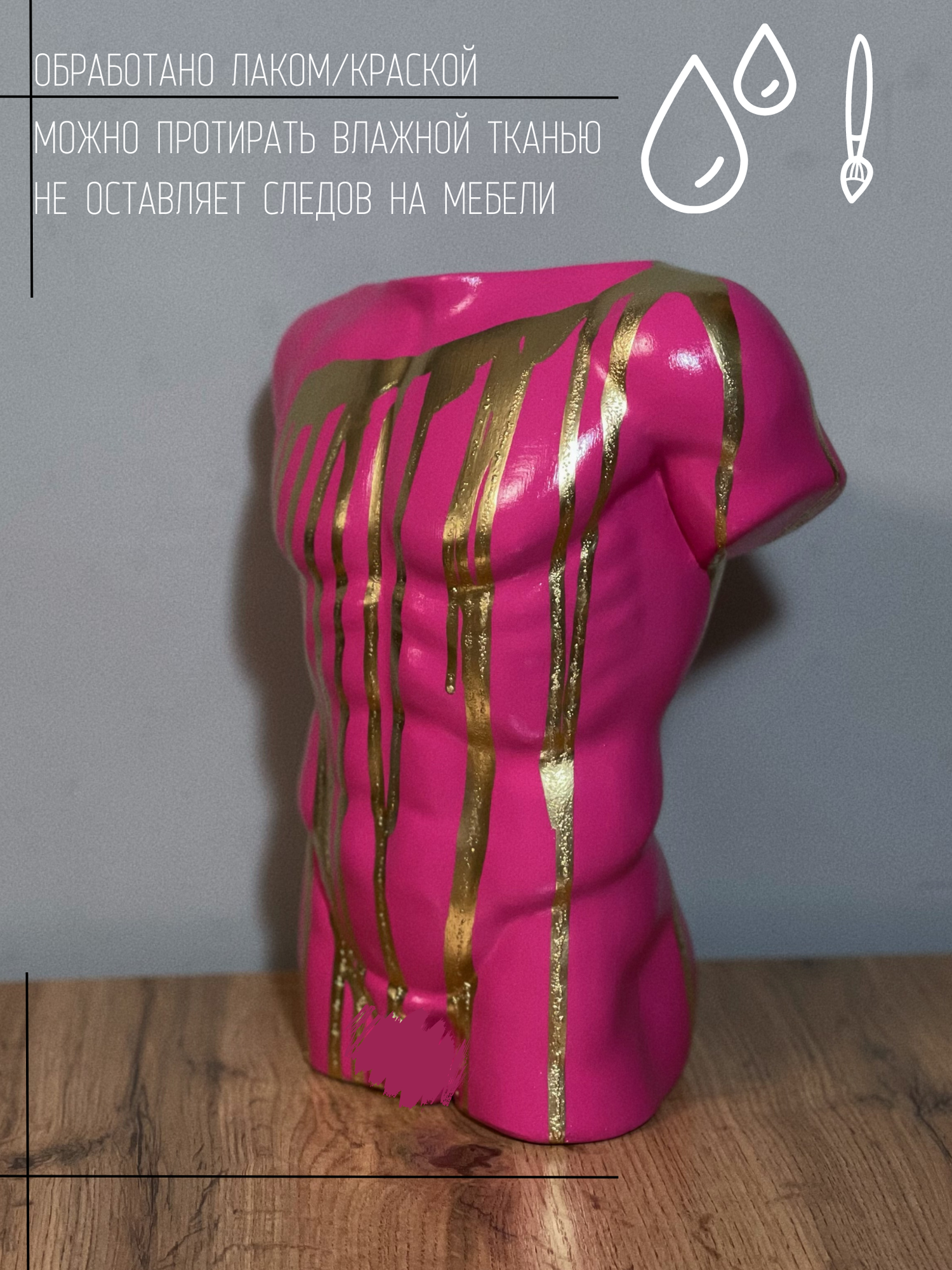 СохранитьКашпо из гипса Мужской торс, 25 см, фуксия/золотой, ваза, органайзер интересное: