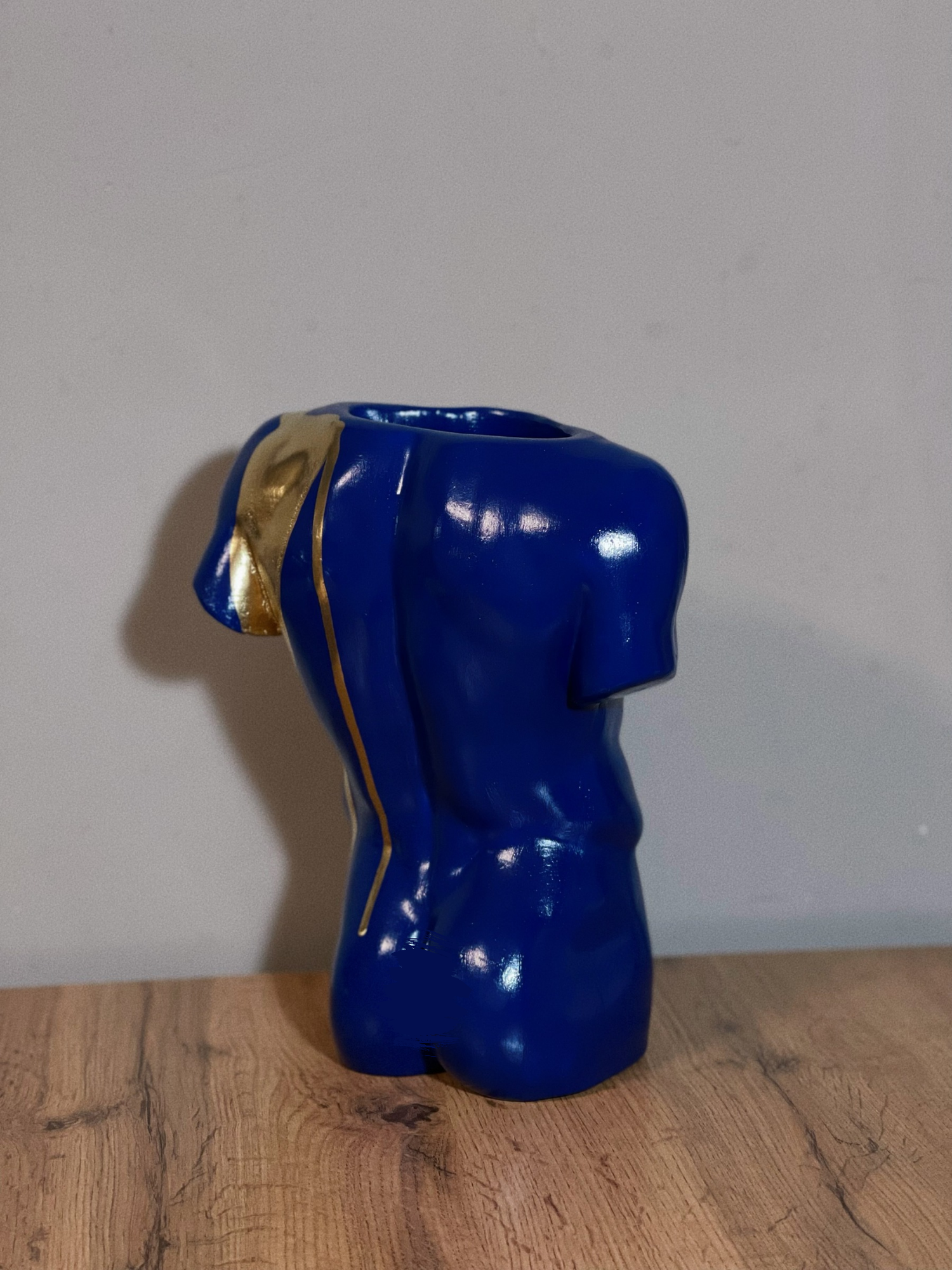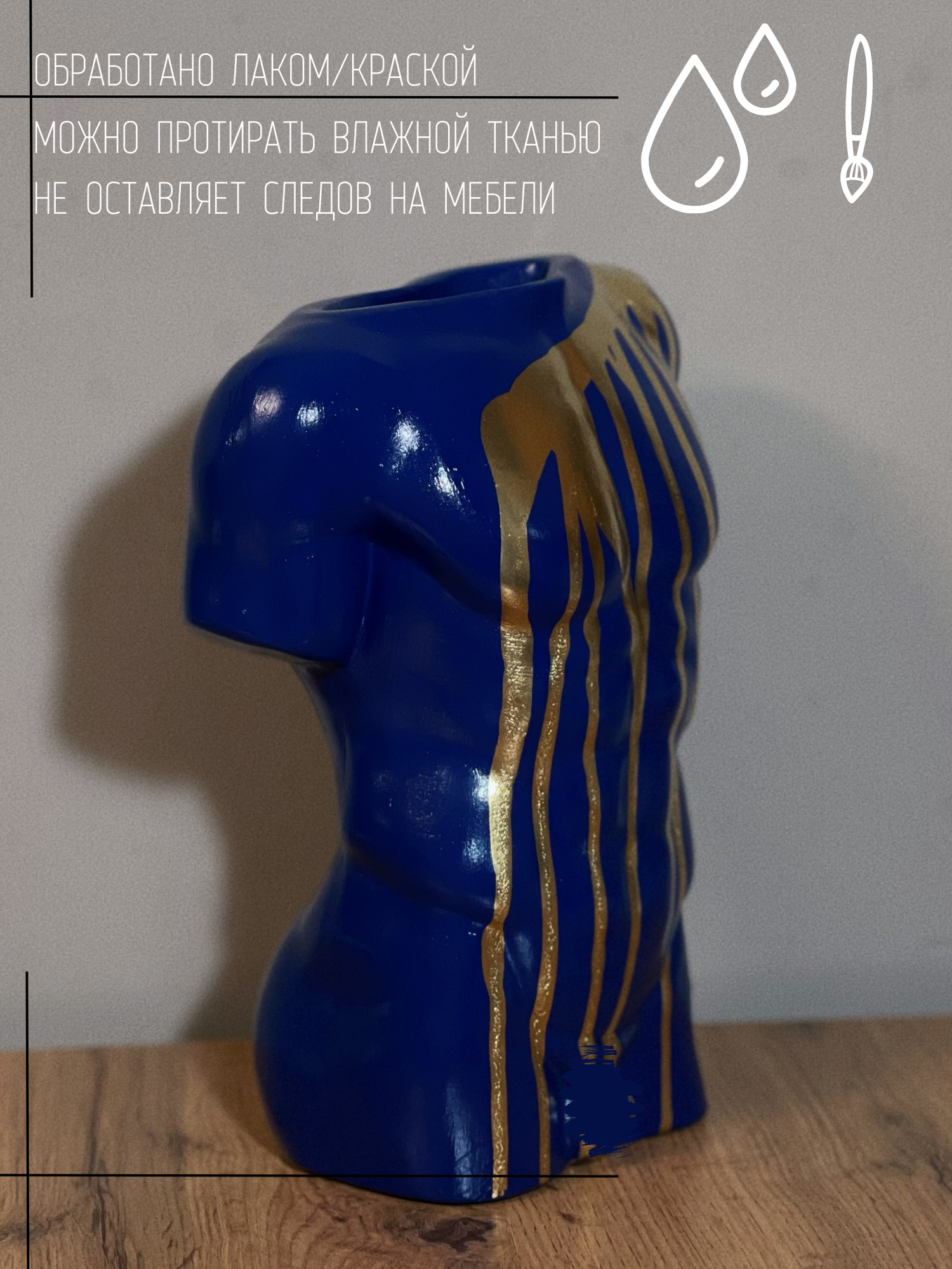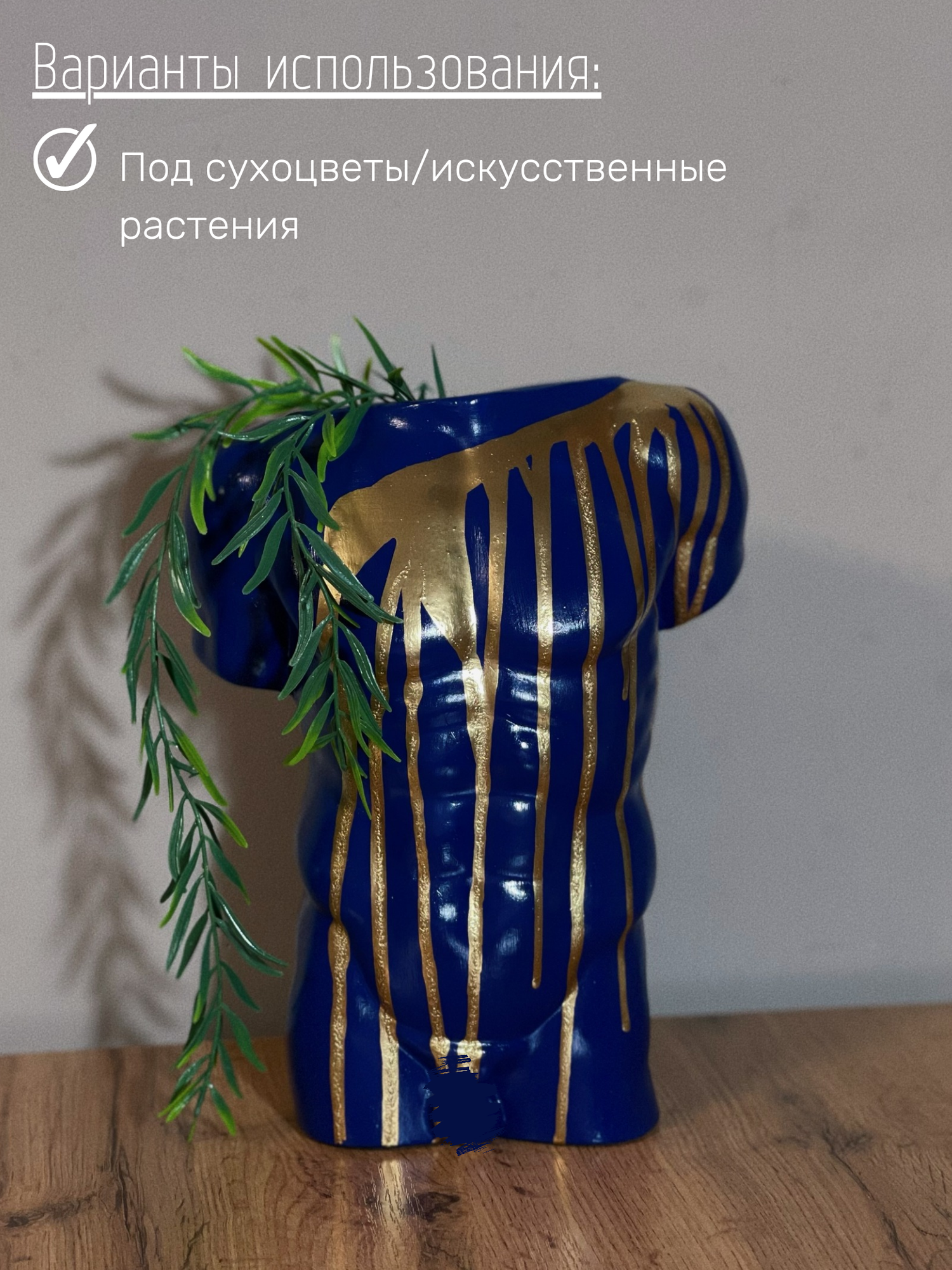 Купить Кашпо из гипса Мужской торс, 25 см, синий/золотой, ваза, органайзер