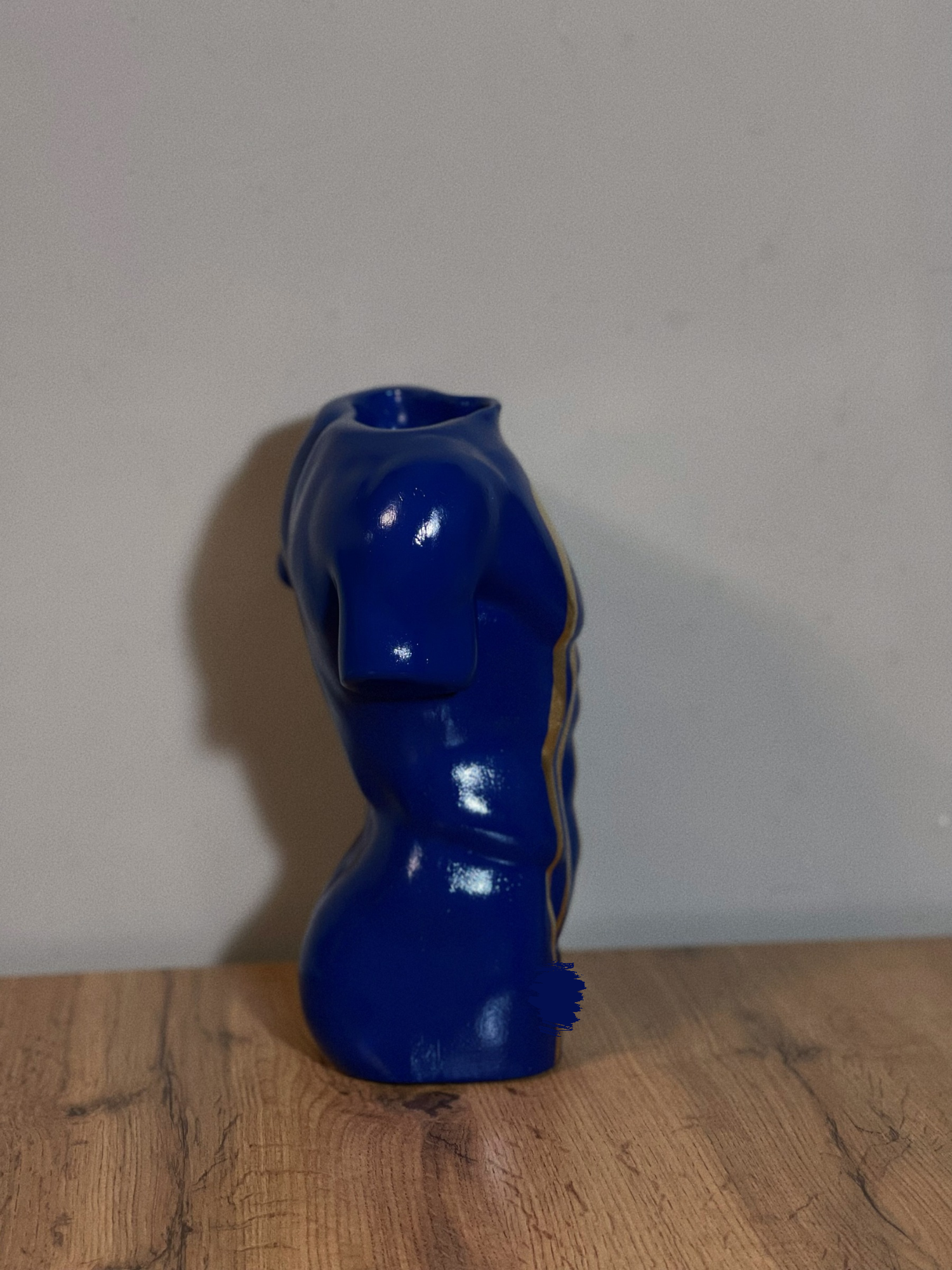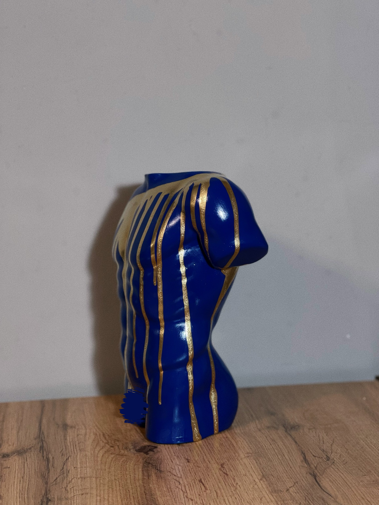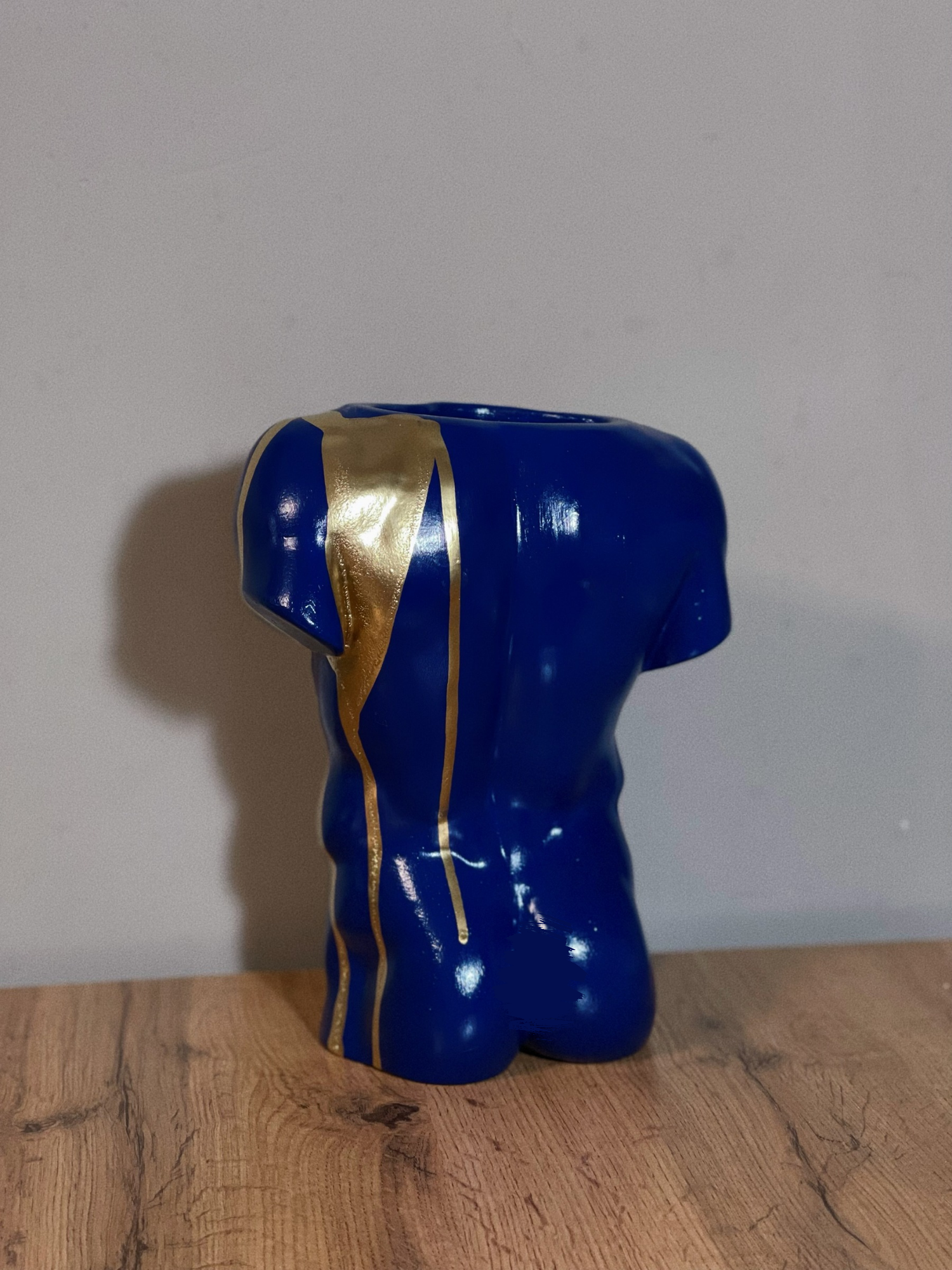 Купить Кашпо из гипса Мужской торс, 25 см, синий/золотой, ваза, органайзер