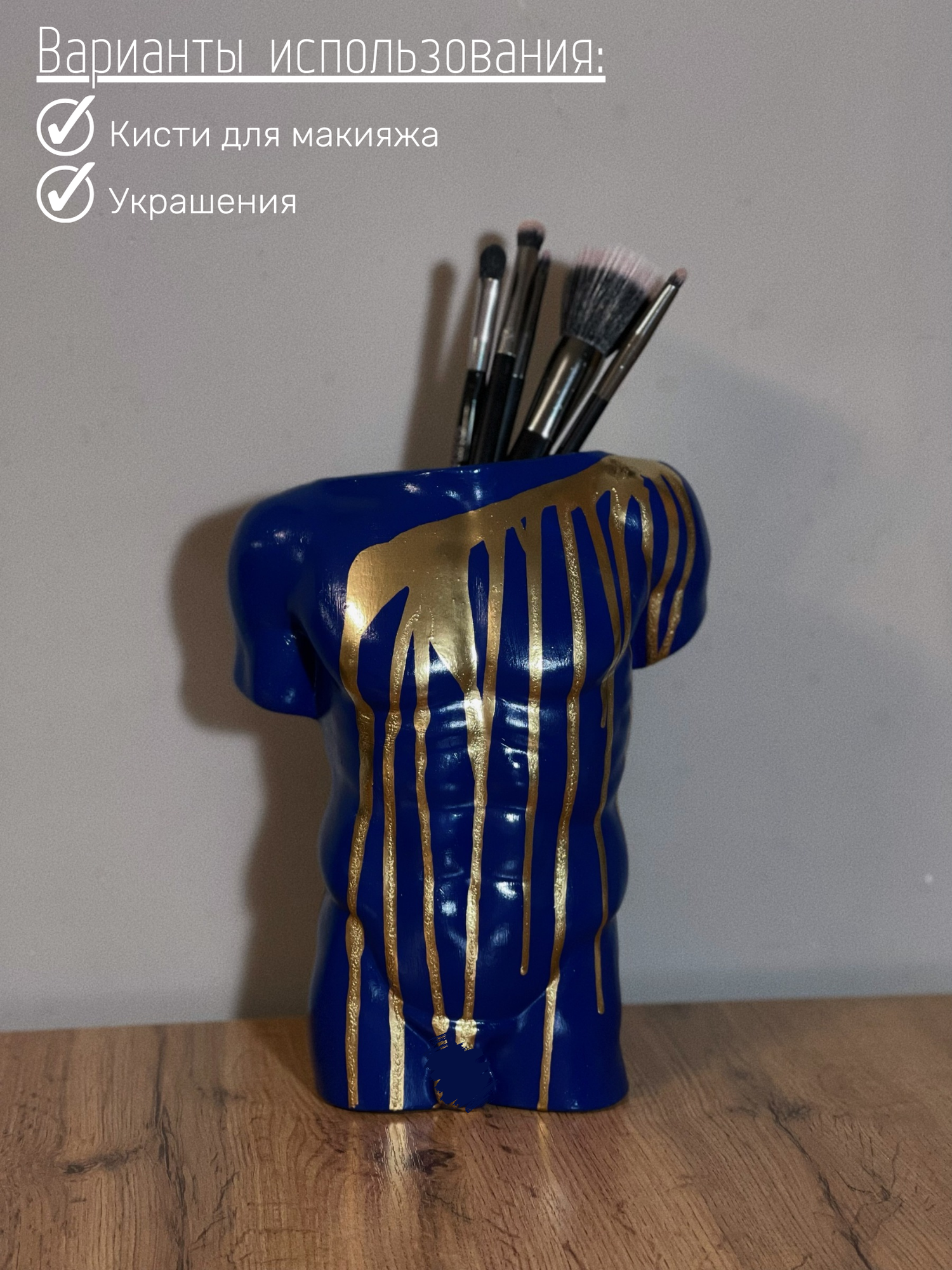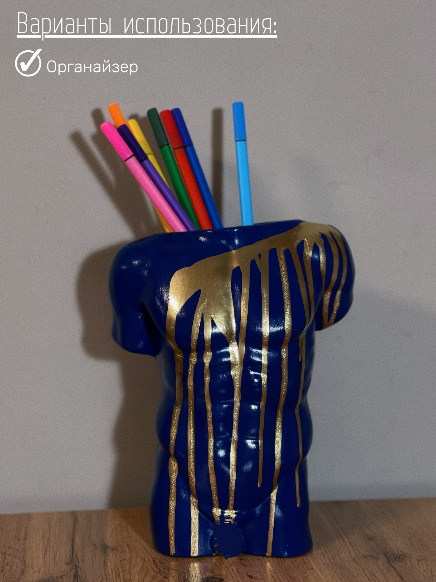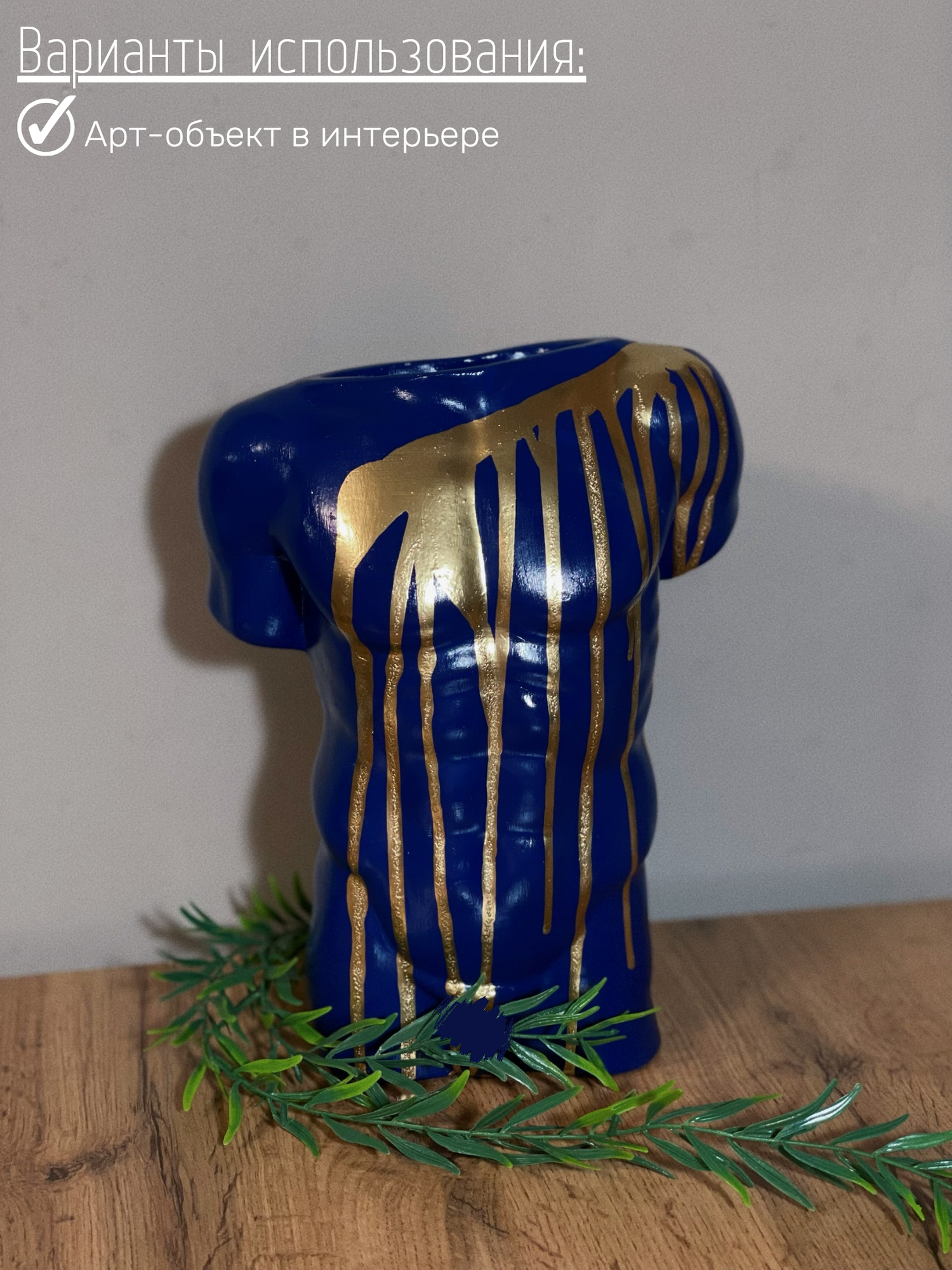 СохранитьКашпо из гипса Мужской торс, 25 см, синий/золотой, ваза, органайзер интересное: