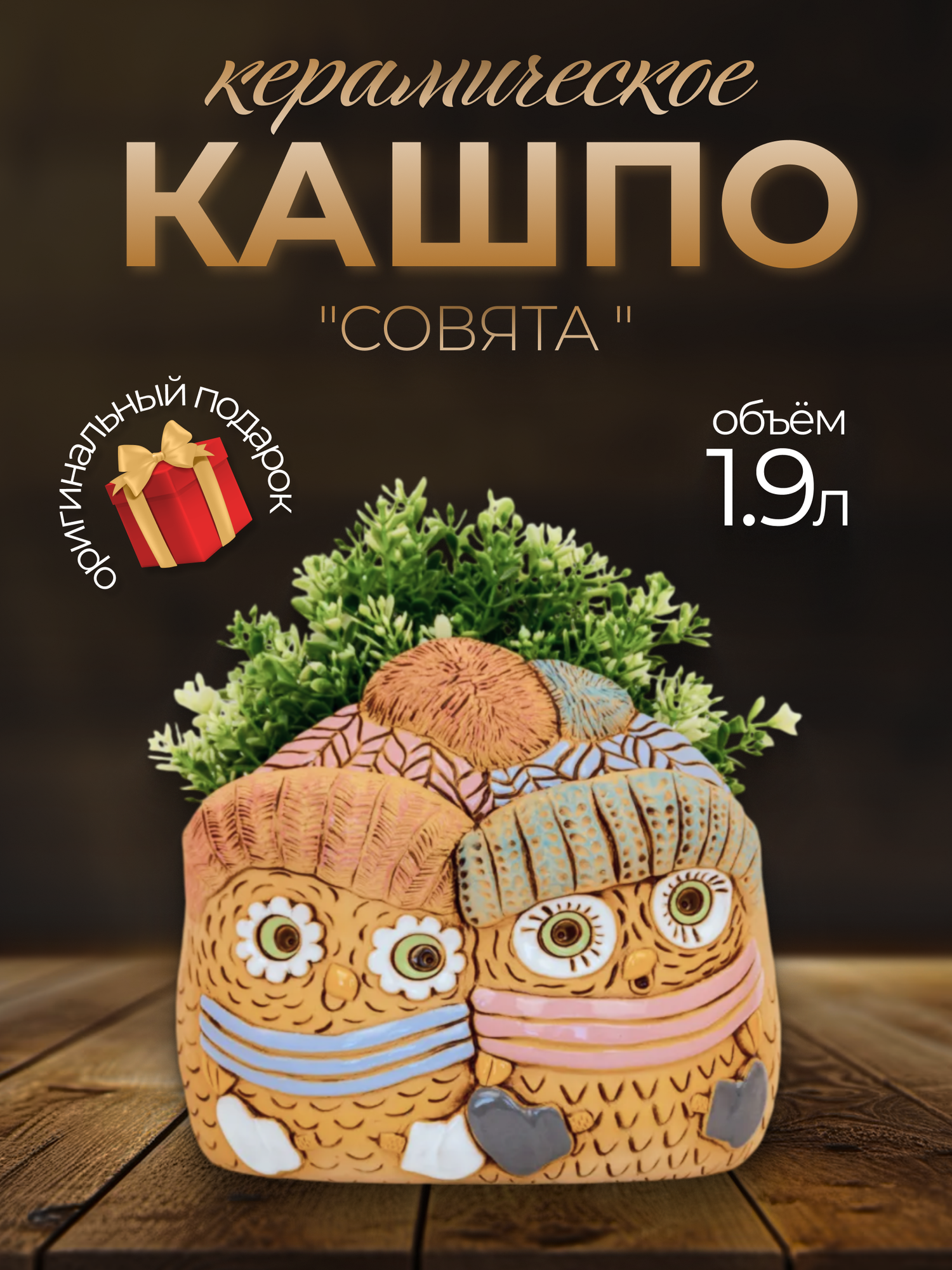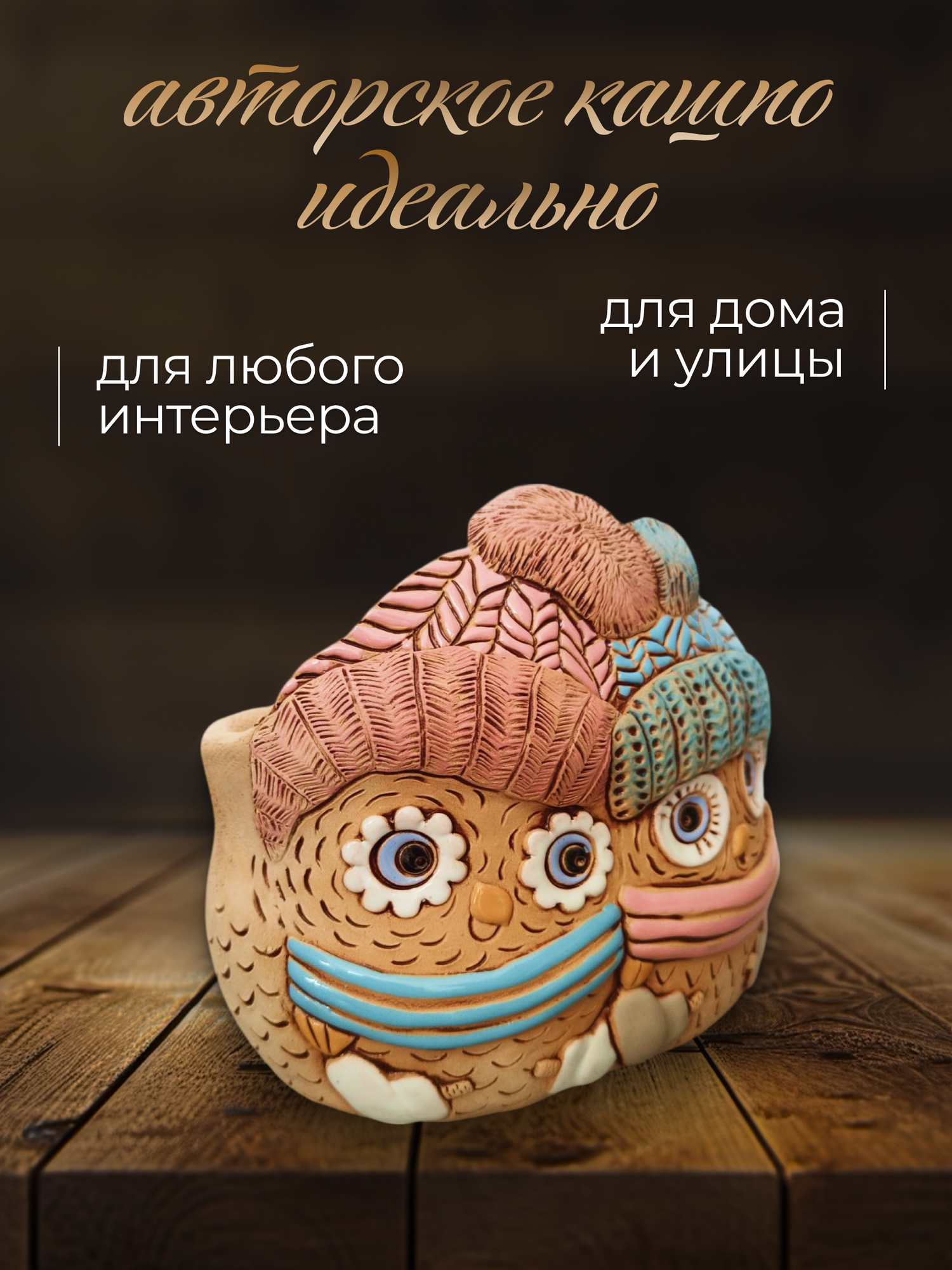 Авторское керамическое кашпо для цветов ручной работы, Совята нежное интересное: