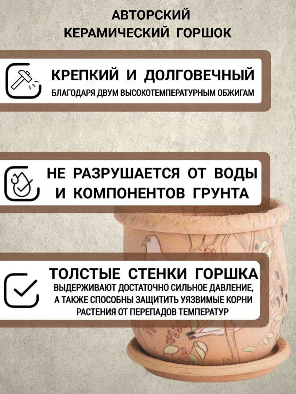 Авторский керамический горшок для цветов ручной работы, Птицы, 1,7л интересное: