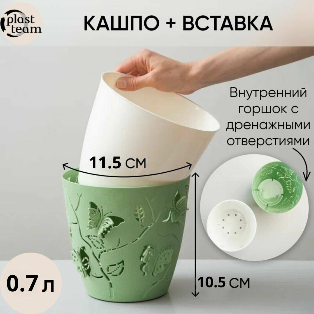 Горшок для цветов Plast Team Butterflies, 1,4 л, зеленое яблоко