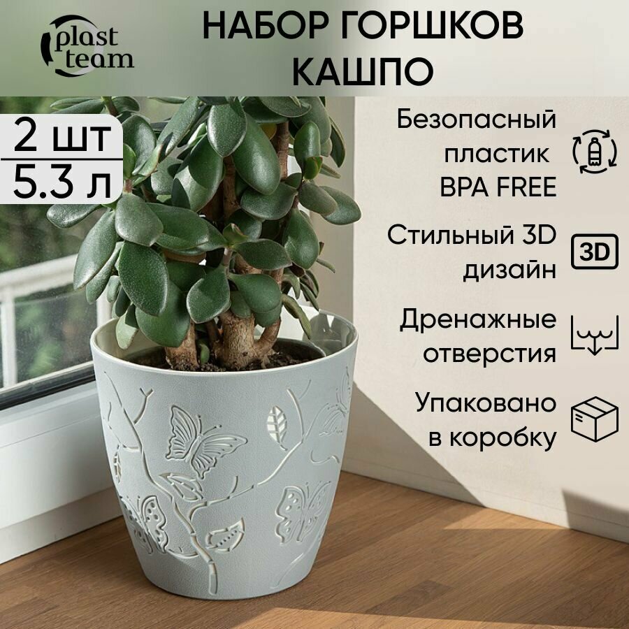 Горшок для цветов Plast Team Butterflies, 5,3 л, серый шторм