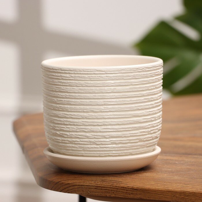 Горшок "Лоза", керамический, для дома, настольный, с поддоном, белый, 0,8л интересное: