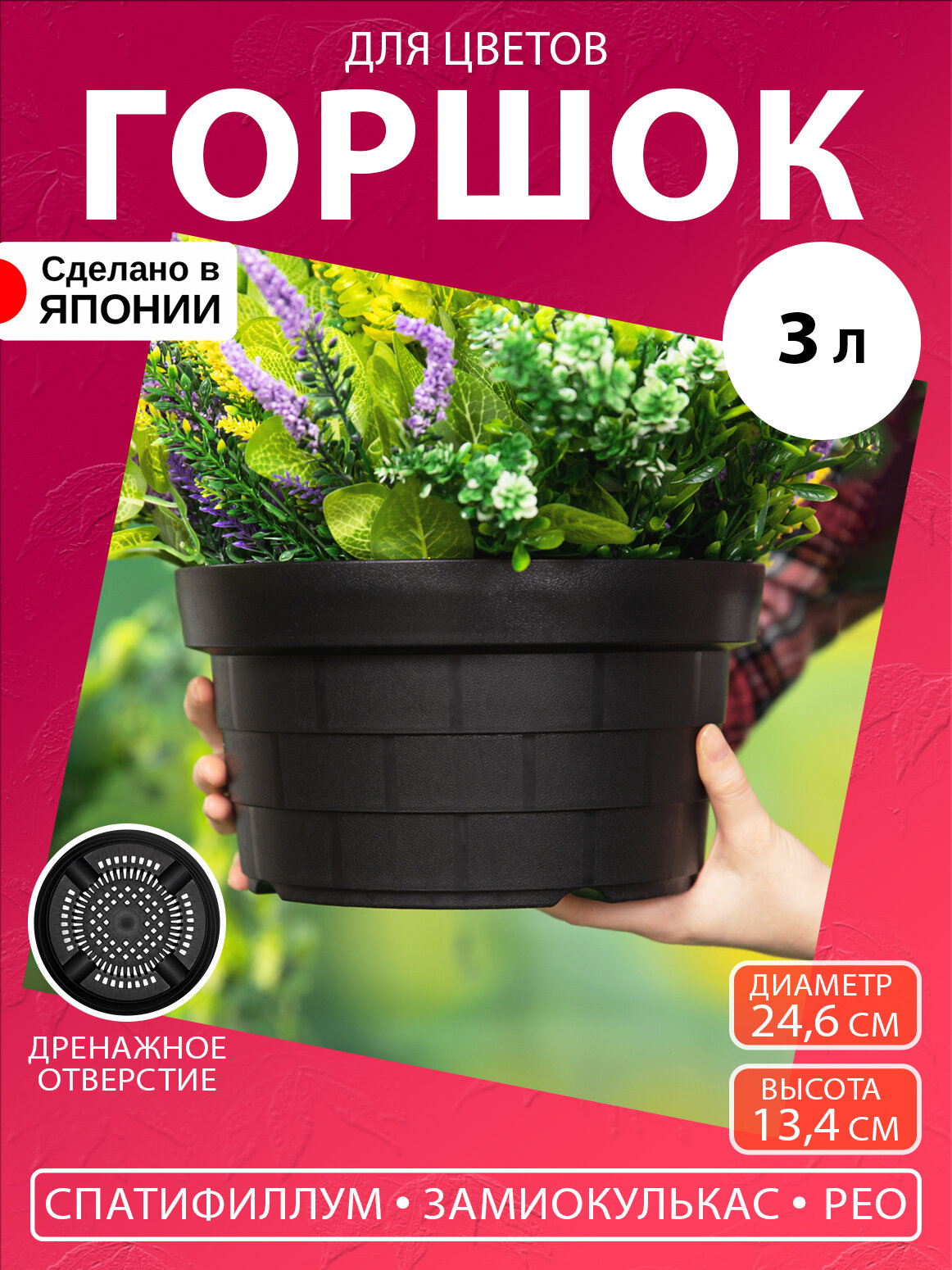 Купить Цветочный горшок круглый чёрный кашпо 3 л 24.5х24.5х13.2 см