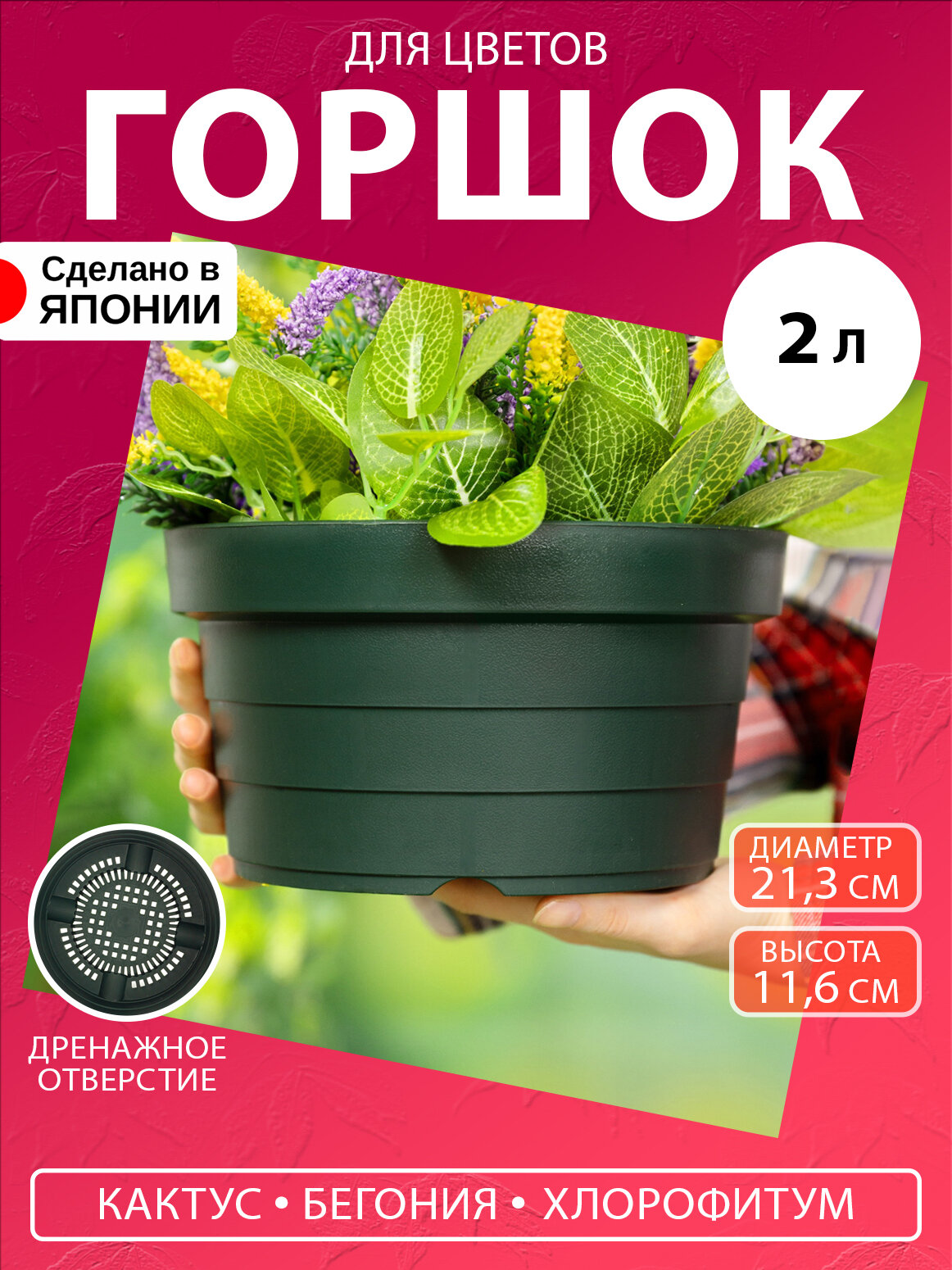Купить Цветочный горшок круглый тёмно-зелёный 2 л 21.3х21.3х11.6 см