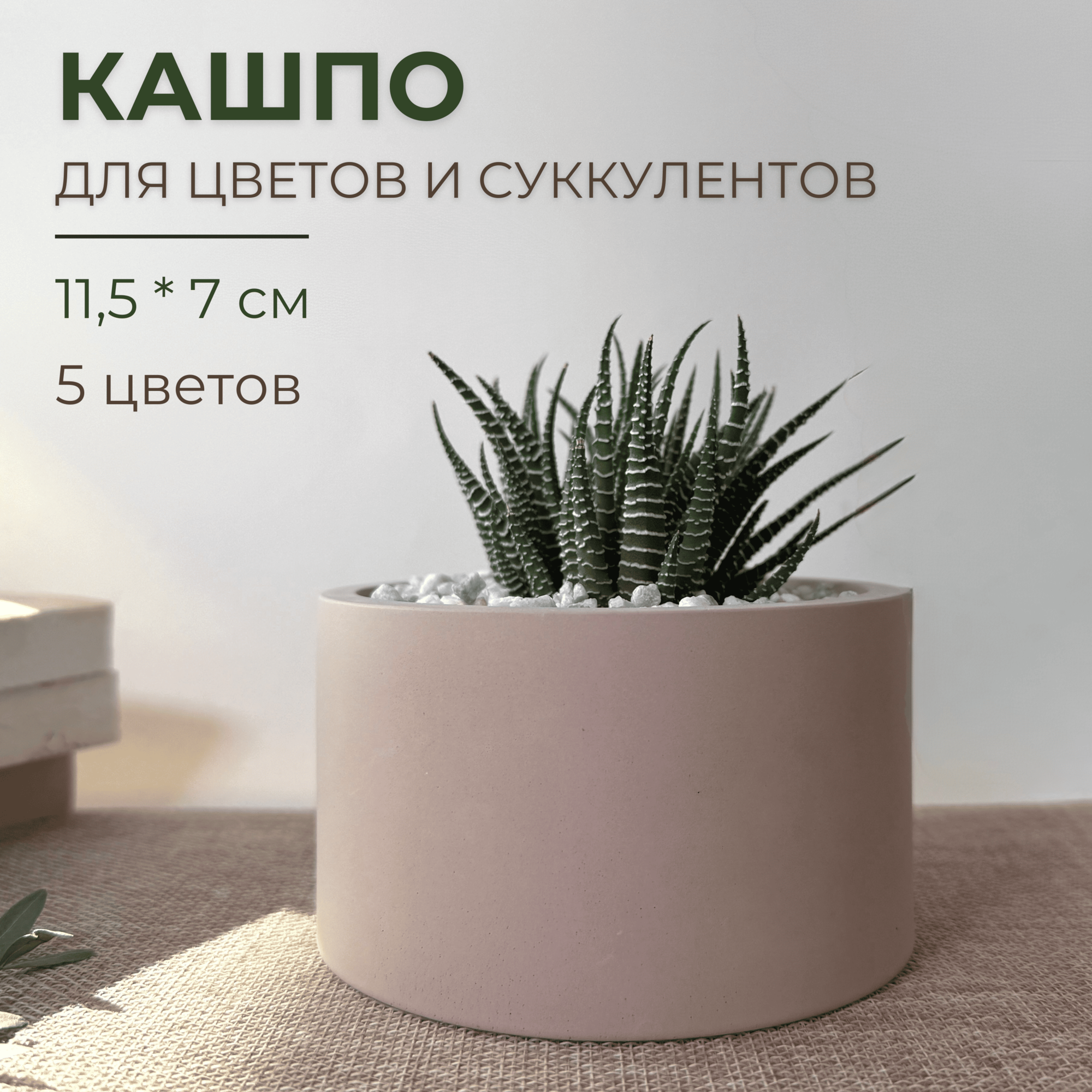 Кашпо для цветов и суккулентов, горшок для цветов, 11,5 х 7 см, бежевый, 500 мл, гипс, бетон интересное: