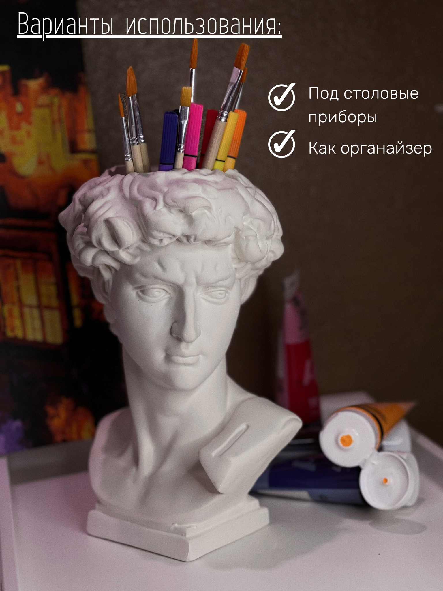СохранитьКашпо-органайзер Бюст Давида декоративное, 25 см, гипс, без окрашивания интересное: