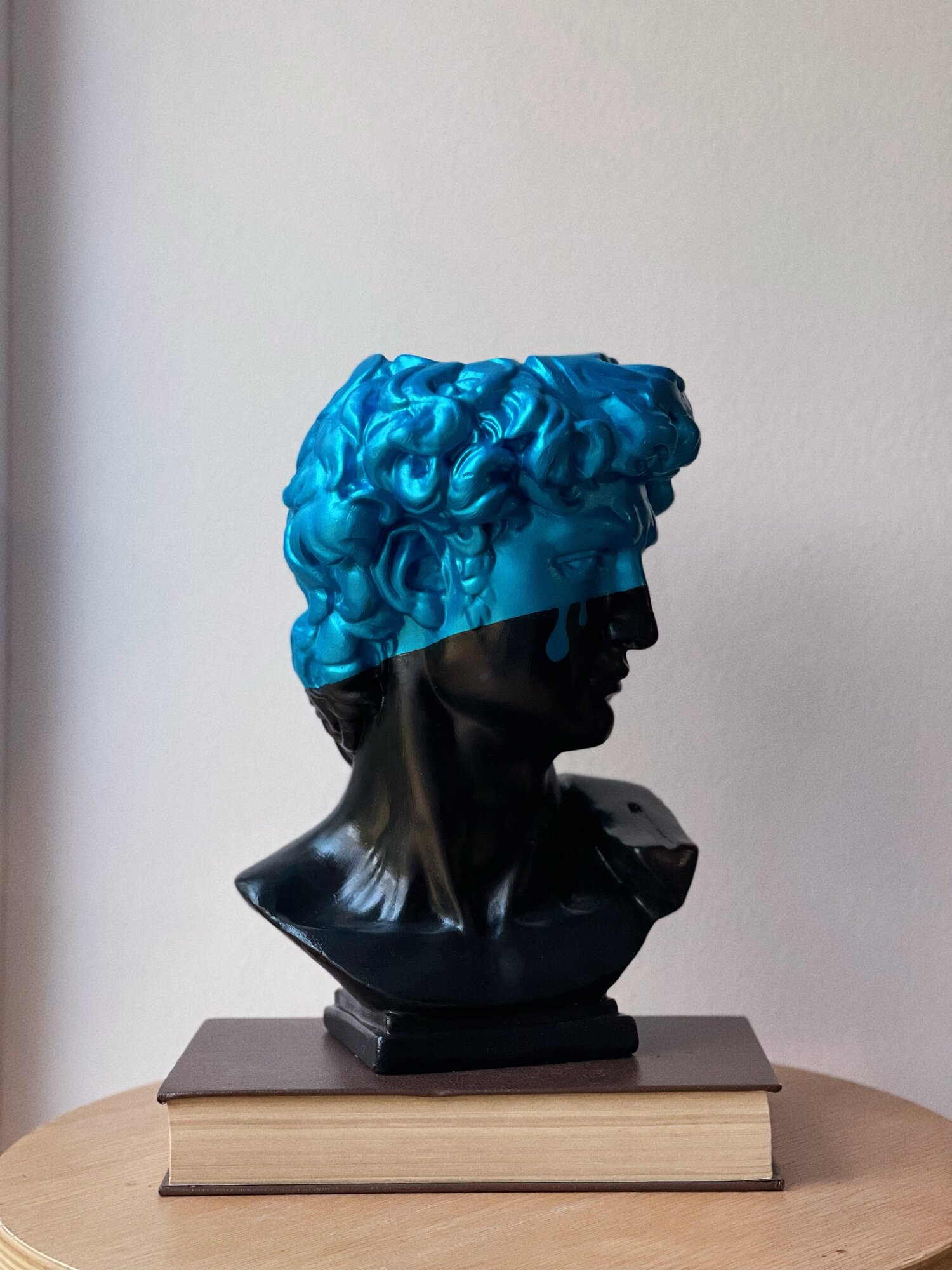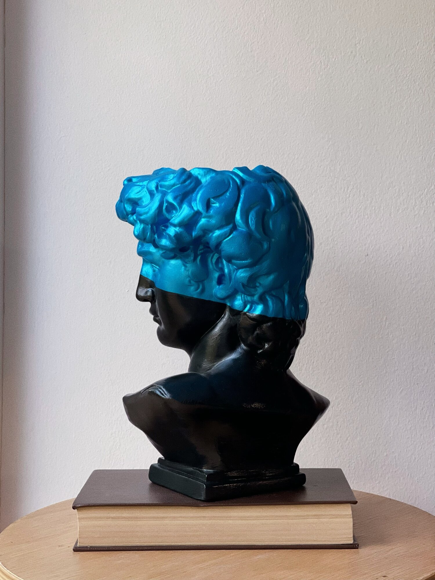 Купить Кашпо-органайзер Бюст Давида декоративное, 25 см, гипс, черный с голубым дизайном