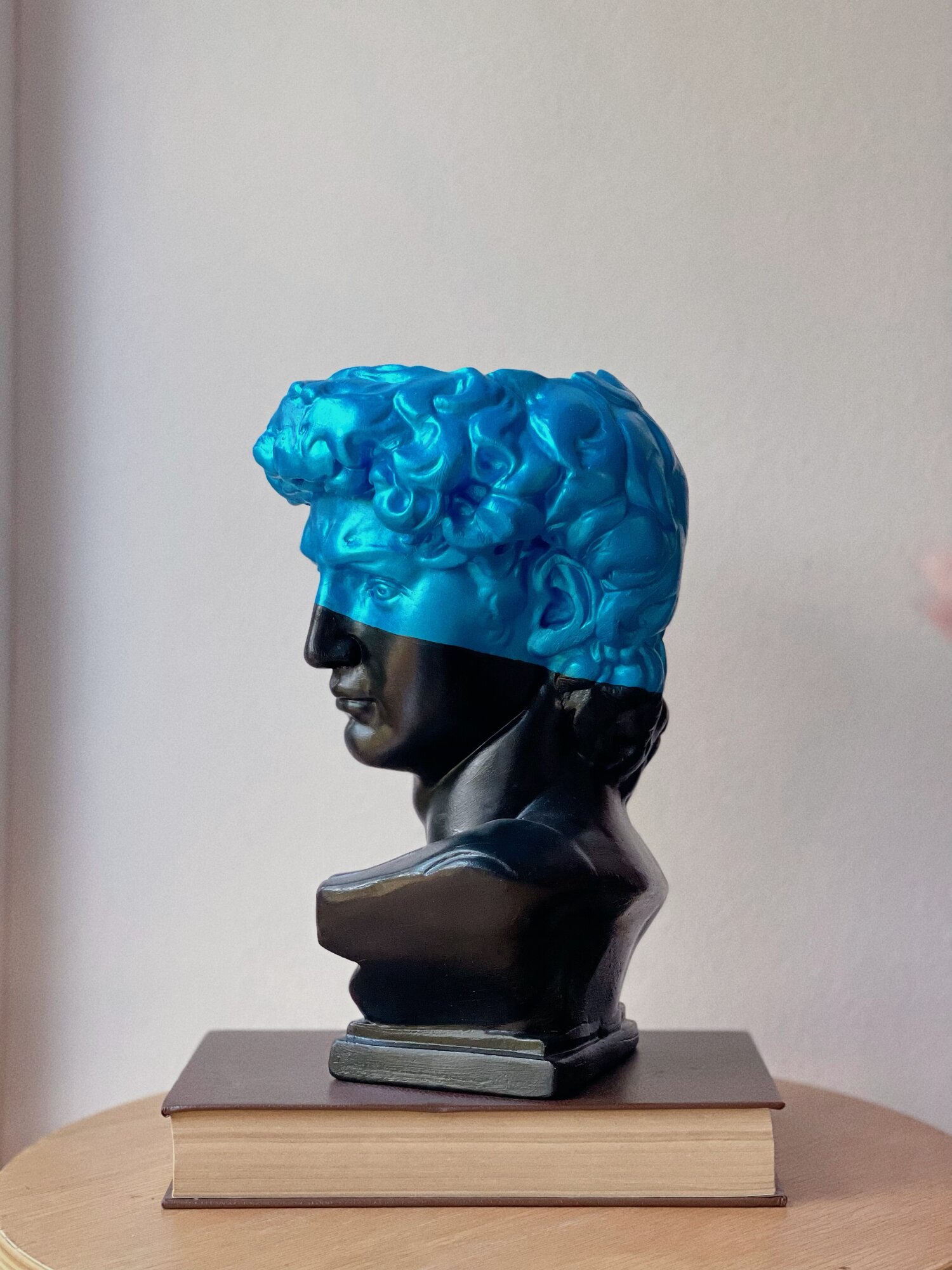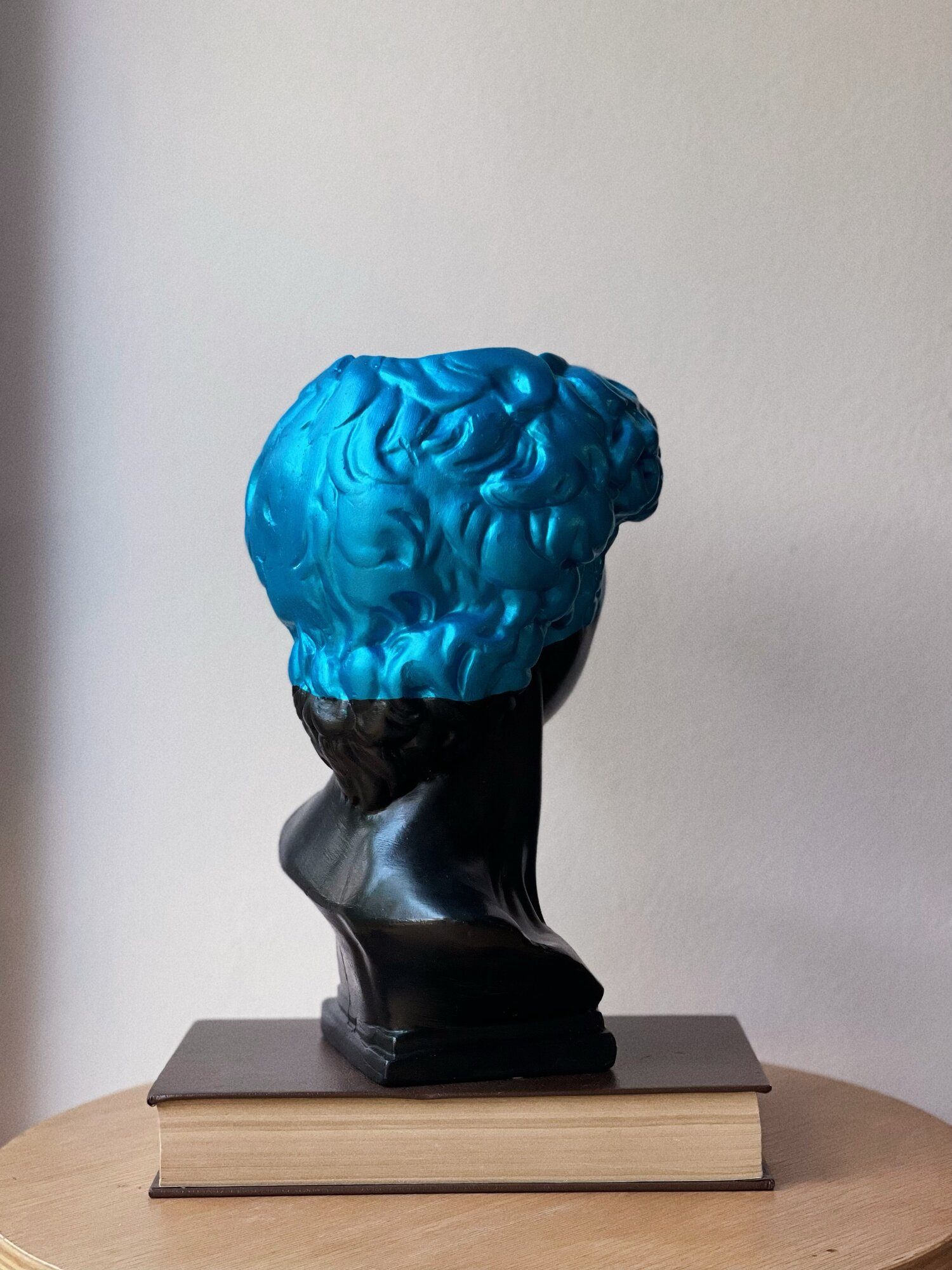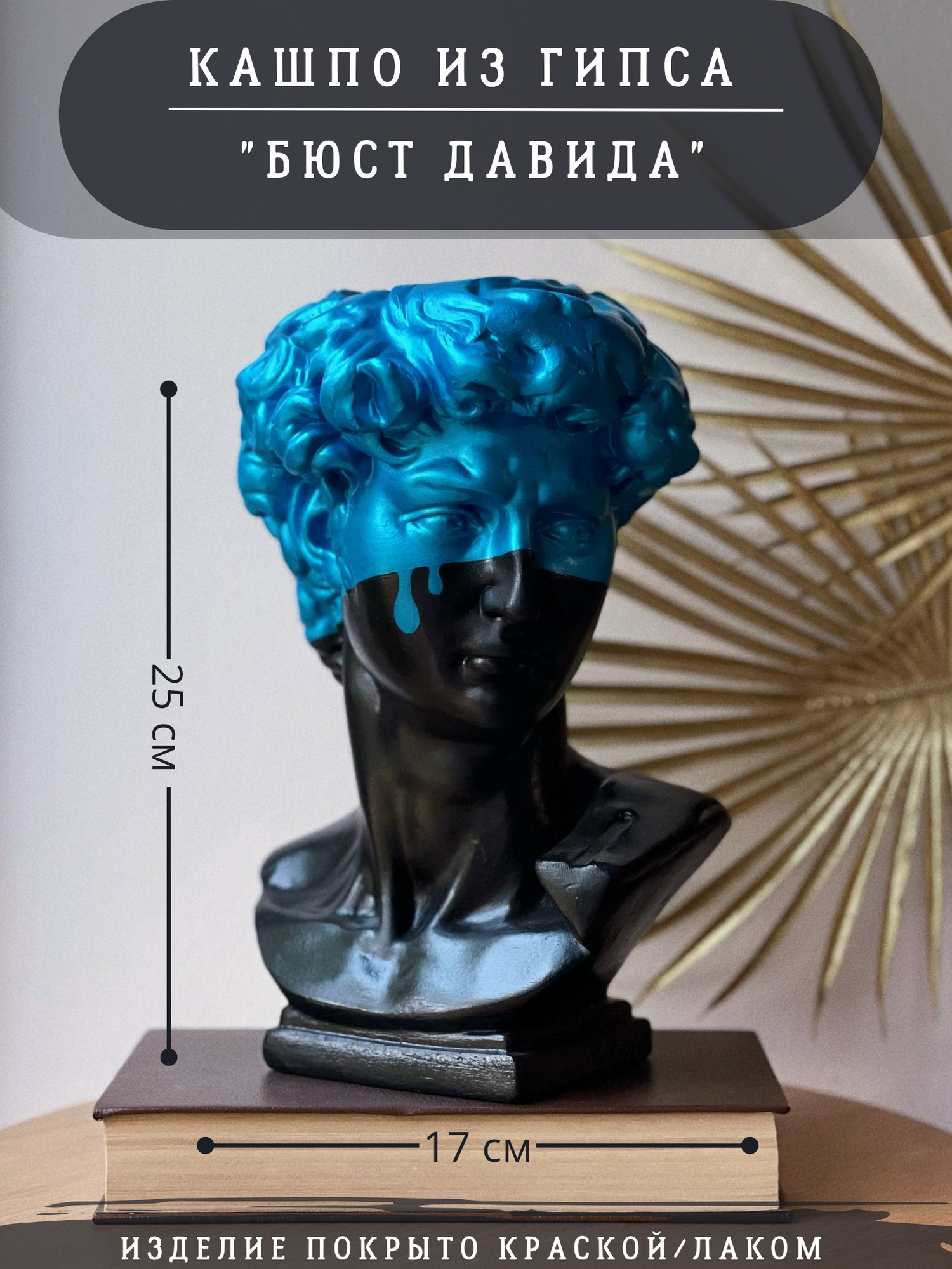 СохранитьКашпо-органайзер Бюст Давида декоративное, 25 см, гипс, черный с голубым дизайном интересное: