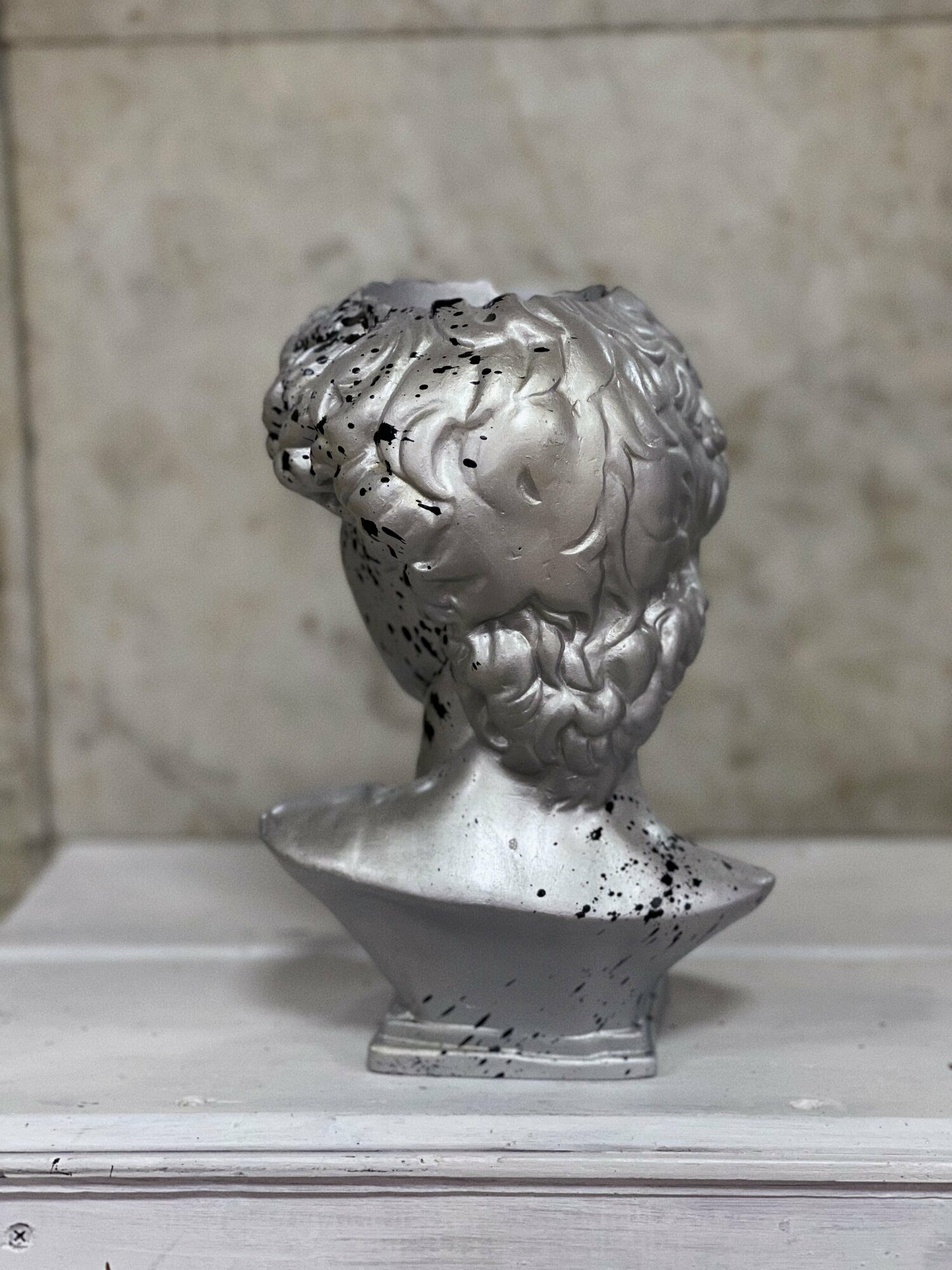 Купить Кашпо-органайзер Бюст Давида декоративное, 25 см, гипс, серебристый с черным