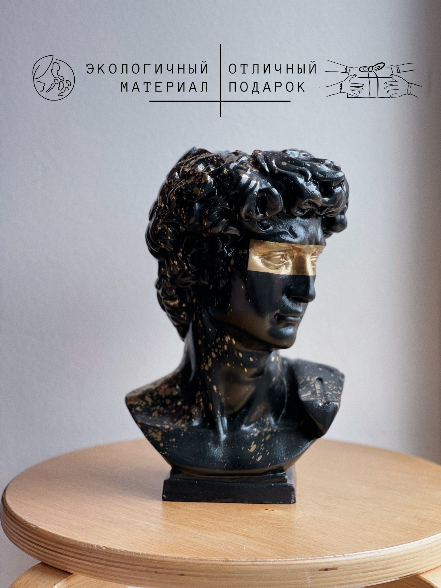 СохранитьКашпо-органайзер Бюст Давида декоративное, 25 см, гипс, черный с золотой полоской на глазах интересное: