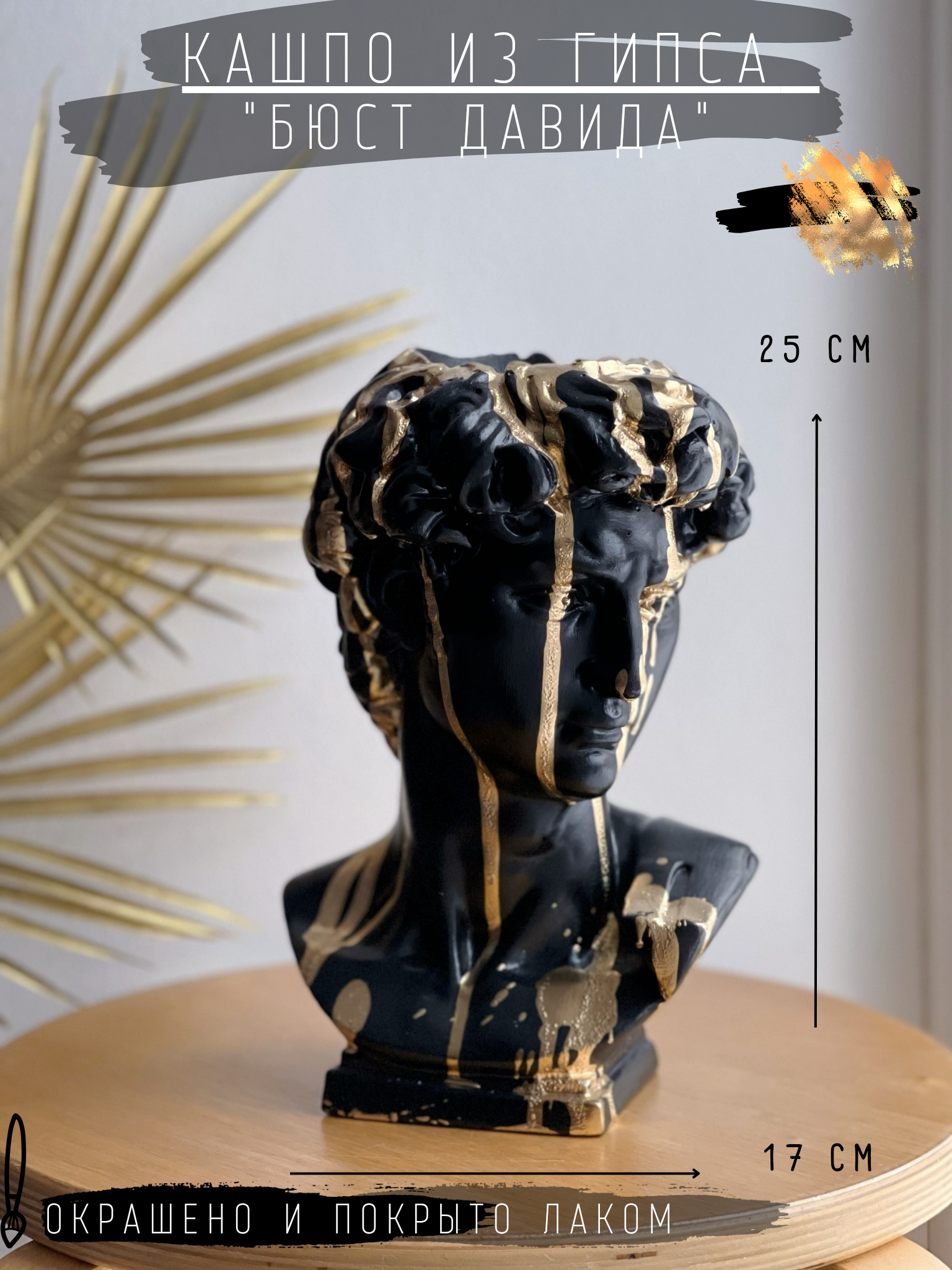 Купить Кашпо-органайзер Бюст Давида декоративное, 25 см, гипс, черный с золотом