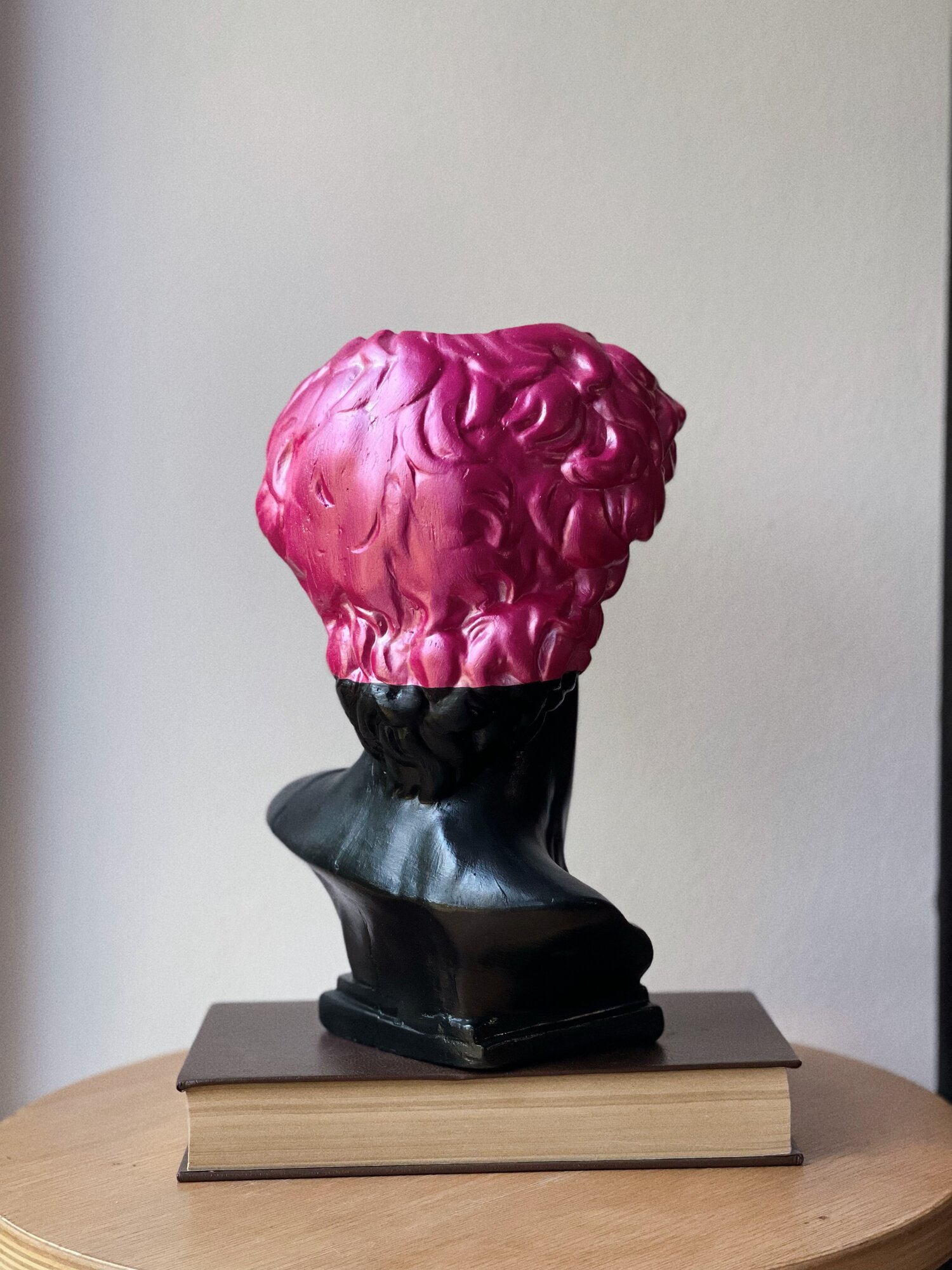 СохранитьКашпо-органайзер Бюст Давида декоративное, 25 см, гипс, черный с розовым дизайном интересное: