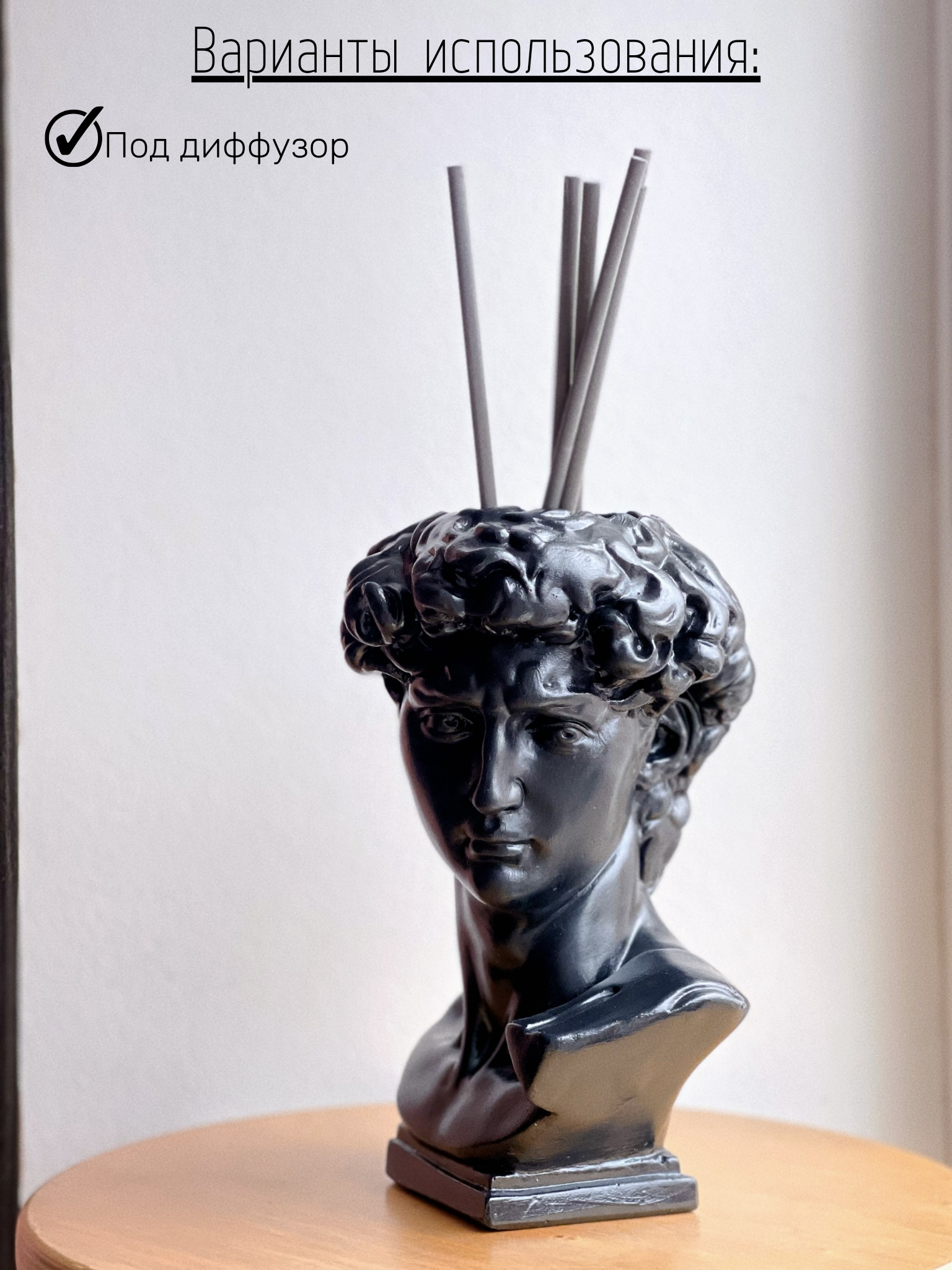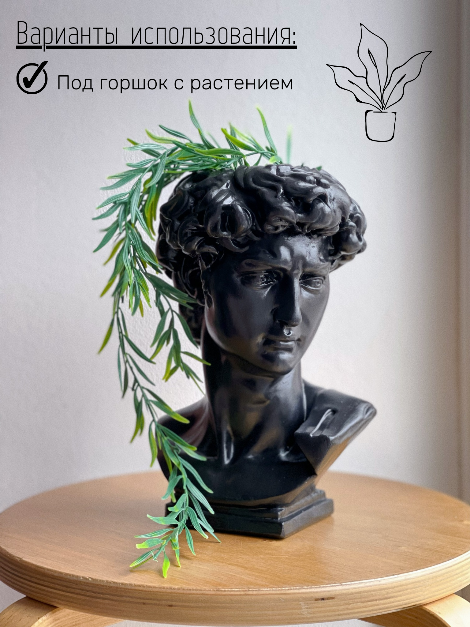 Купить Кашпо-органайзер Бюст Давида декоративное, 25 см, гипс, черный цвет