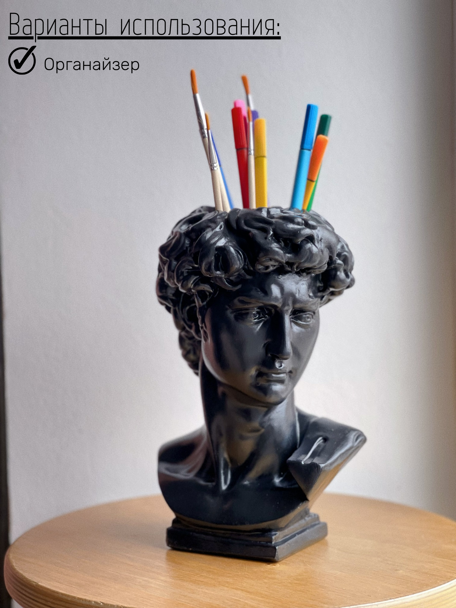 СохранитьКашпо-органайзер Бюст Давида декоративное, 25 см, гипс, черный цвет интересное: