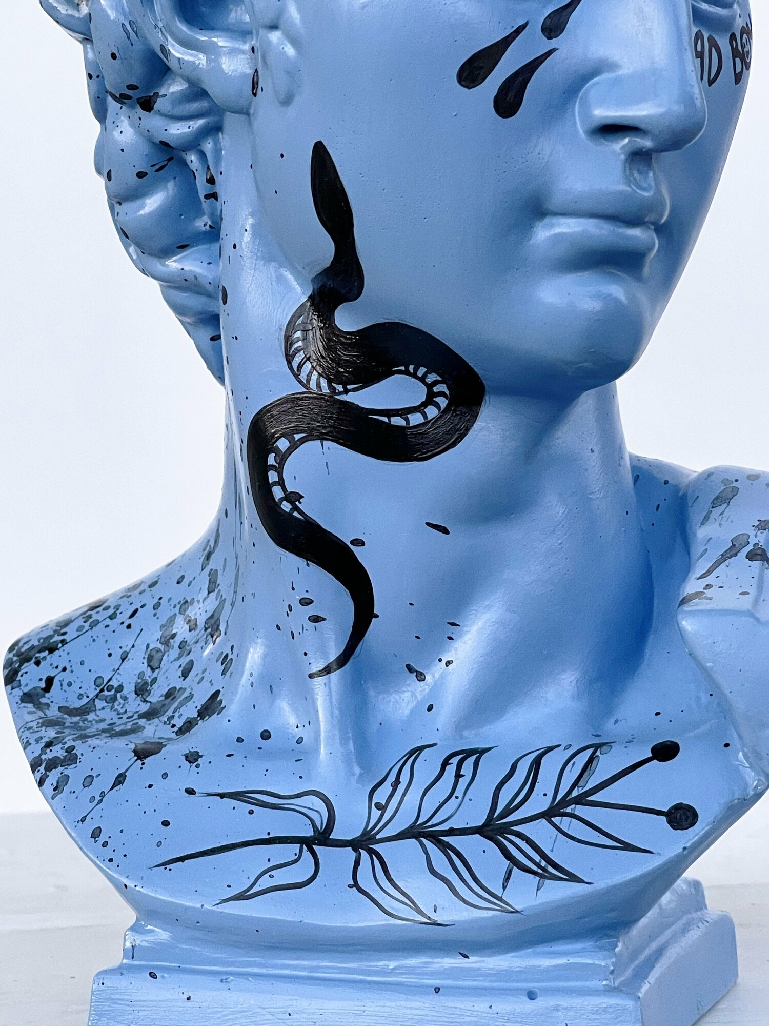 Купить Кашпо-органайзер Бюст Давида декоративное, 25 см, гипс, голубой цвет с рисунками, со змеей