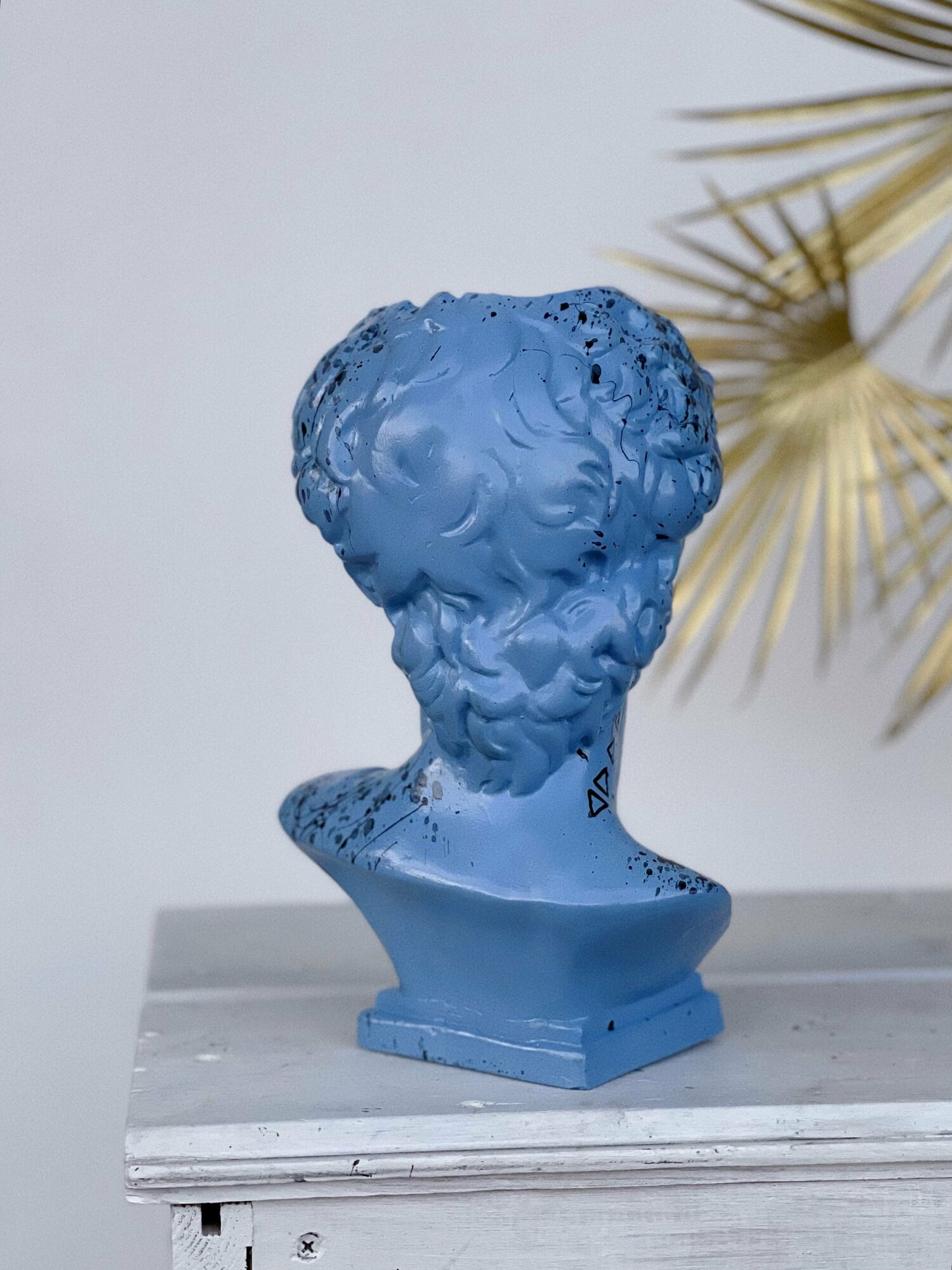 Кашпо-органайзер Бюст Давида декоративное, 25 см, гипс, черный с голубым дизайном