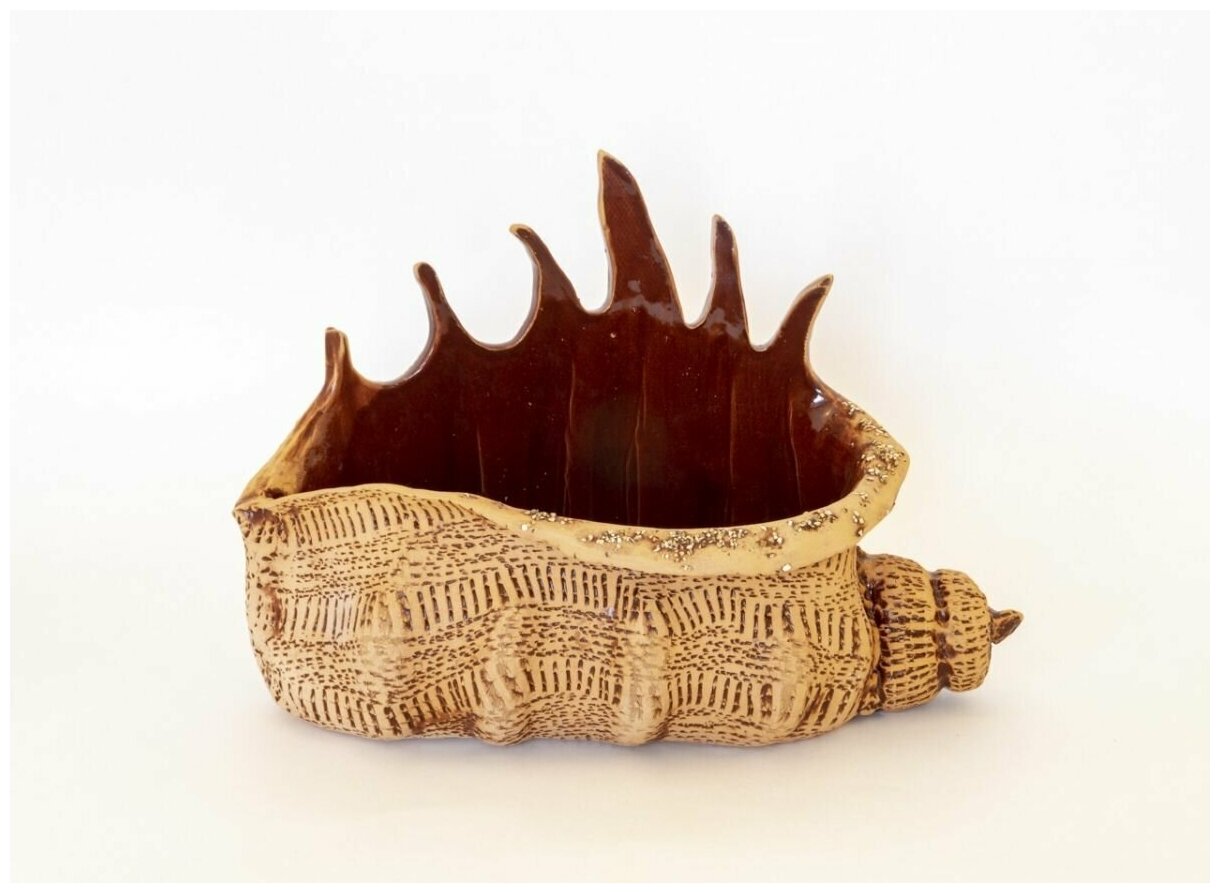 Авторское керамическое кашпо для цветов ручной работы, Ракушка моллюска, 2,7л