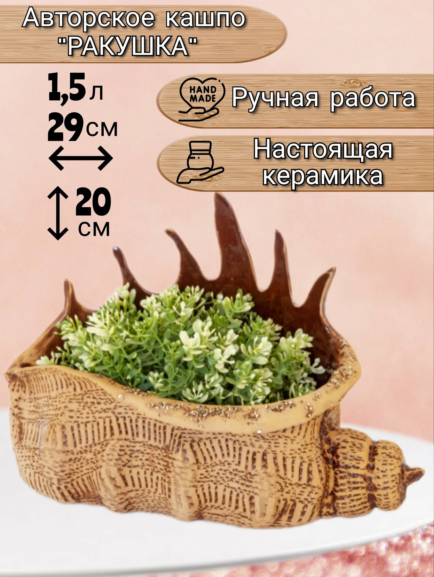 Ниже Вы можете прочитать отзывы на Авторское керамическое кашпо для цветов ручной работы, Ламбис ракушка, 1,5 л, подарок, ознакомится с подробными характеристиками, посмотреть интересные обзоры и фотографии на Авторское керамическое кашпо для цветов ручной работы, Ламбис ракушка, 1,5 л, подарок.