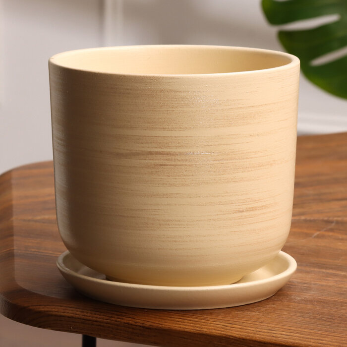 Горшок для цветов керамический "Галактика-4" 3л, д18см, h15,5см, форма "Цилиндр", с поддоном, бежевый