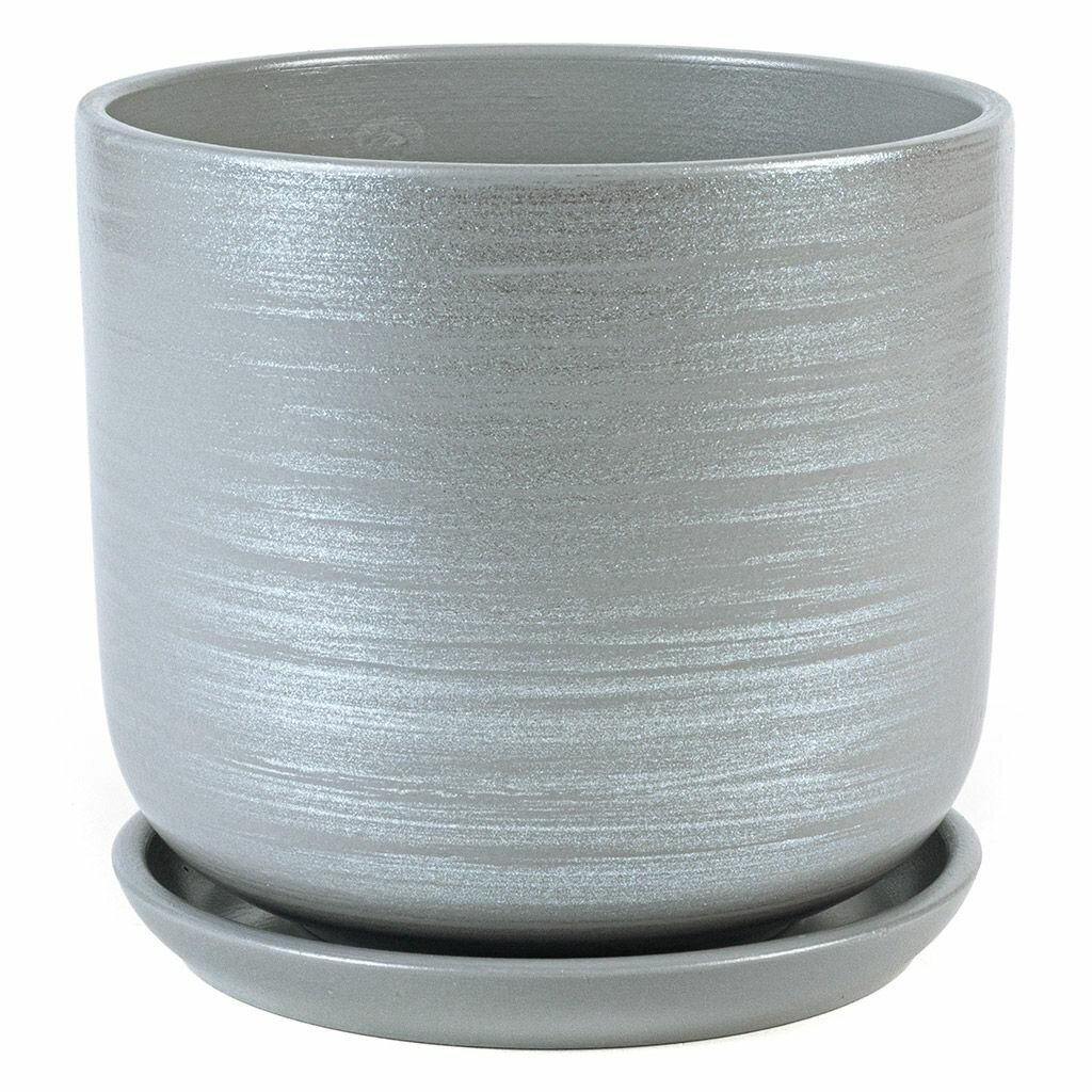 Горшок для цветов керамический "Галактика-4" 3л, д18см, h15,5см, форма "Цилиндр", с поддоном, серый