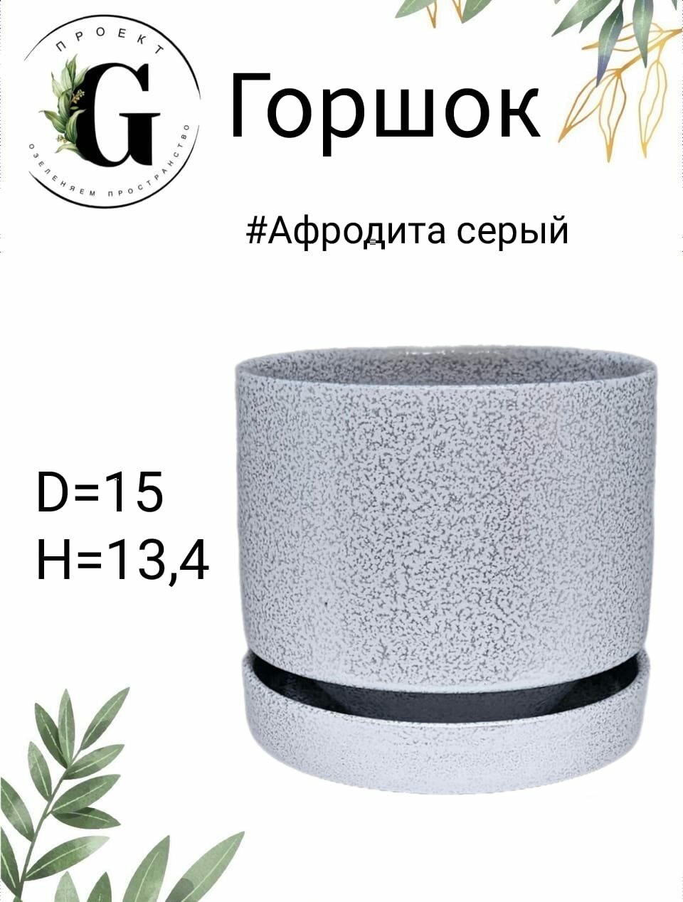 Горшок цветочный "Афродита", керамика, настольный, с поддоном, серый, 1.7 л интересное: