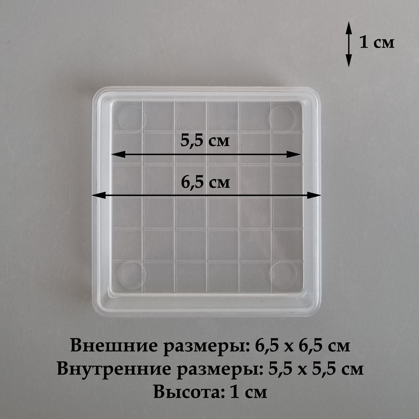 Квадратные поддоны для горшков, 6,5 х 6,5 см (внутр. 5,5 х 5,5 см). Прозрачные. Набор из 20-ти штку